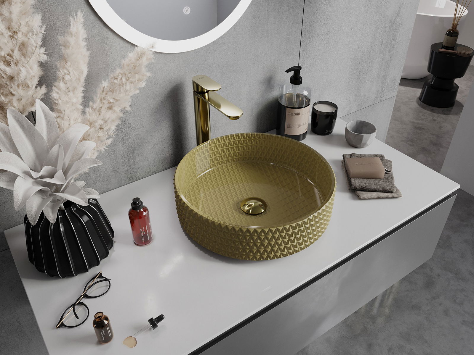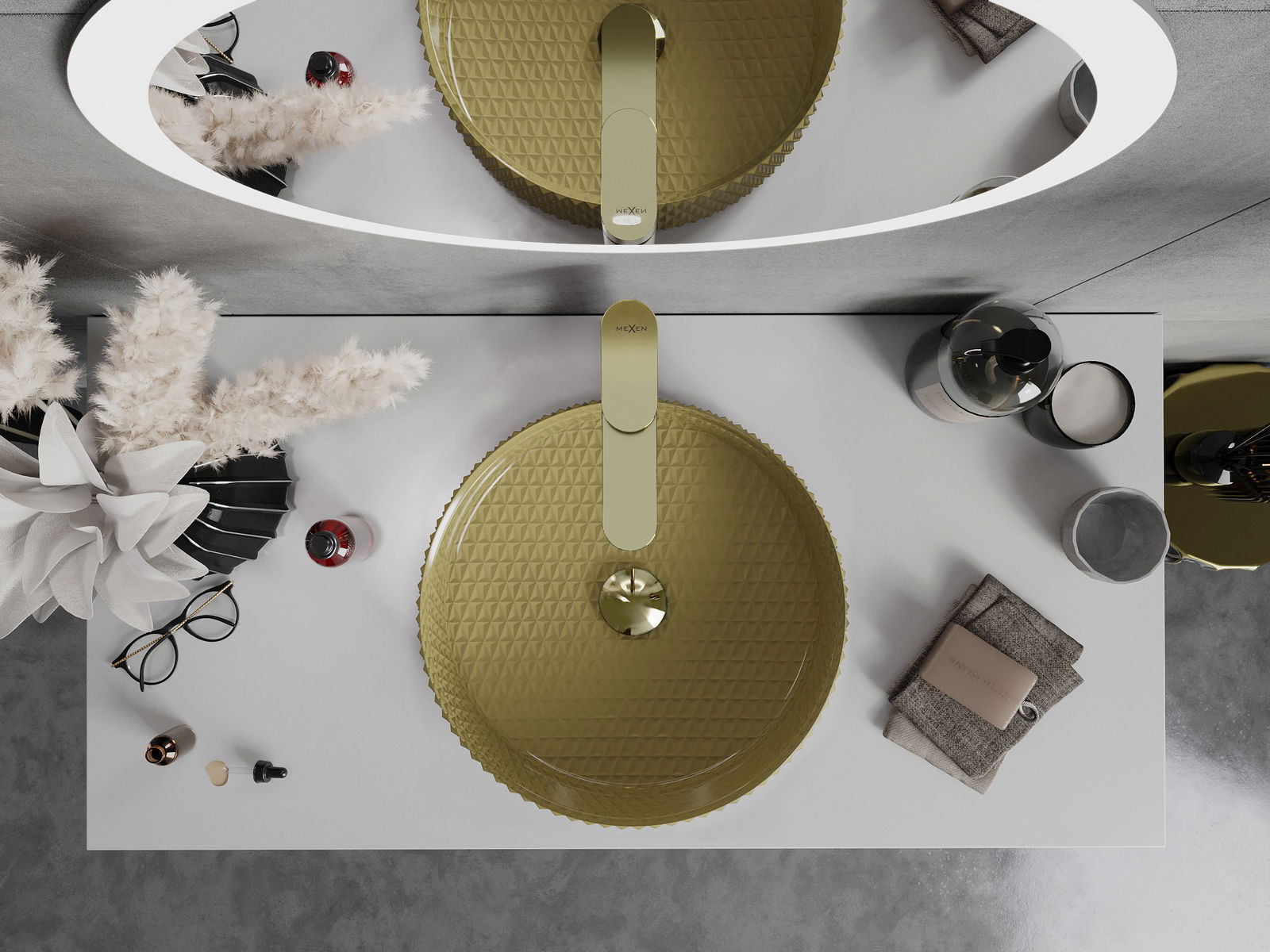 Mexen Aura glass countertop washbasin 39 x 39 cm, gold - 24013950