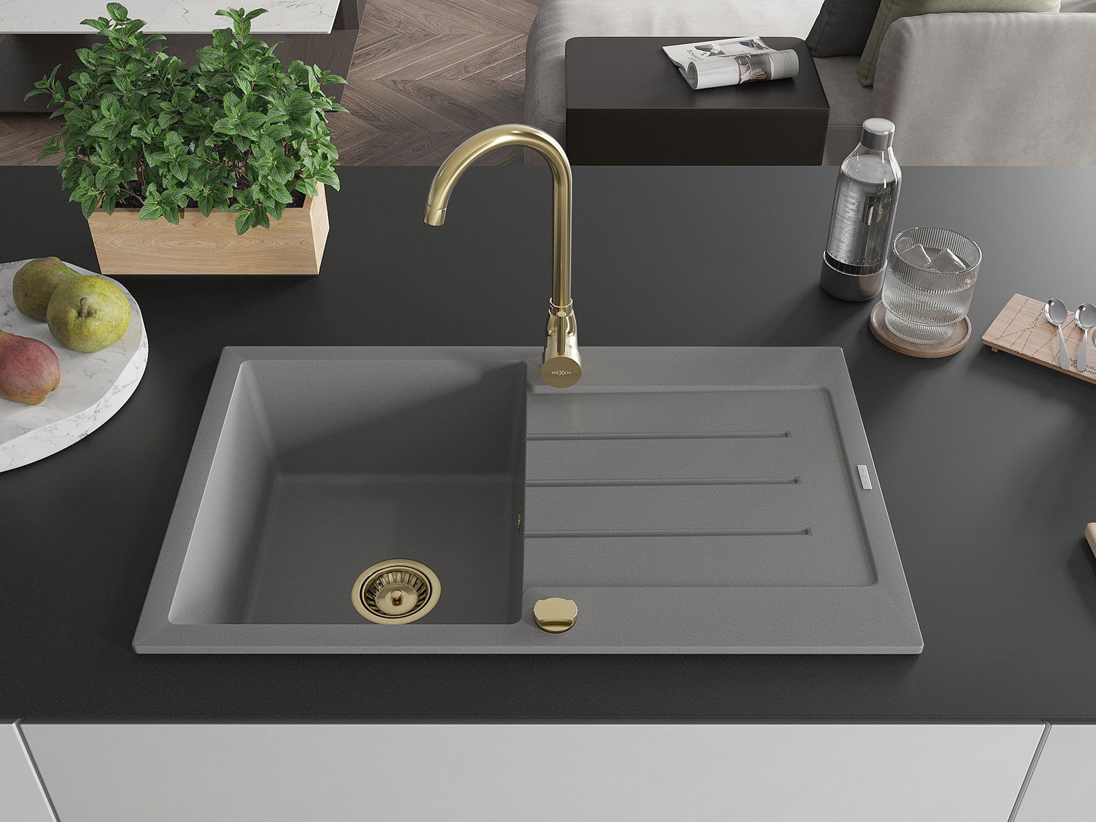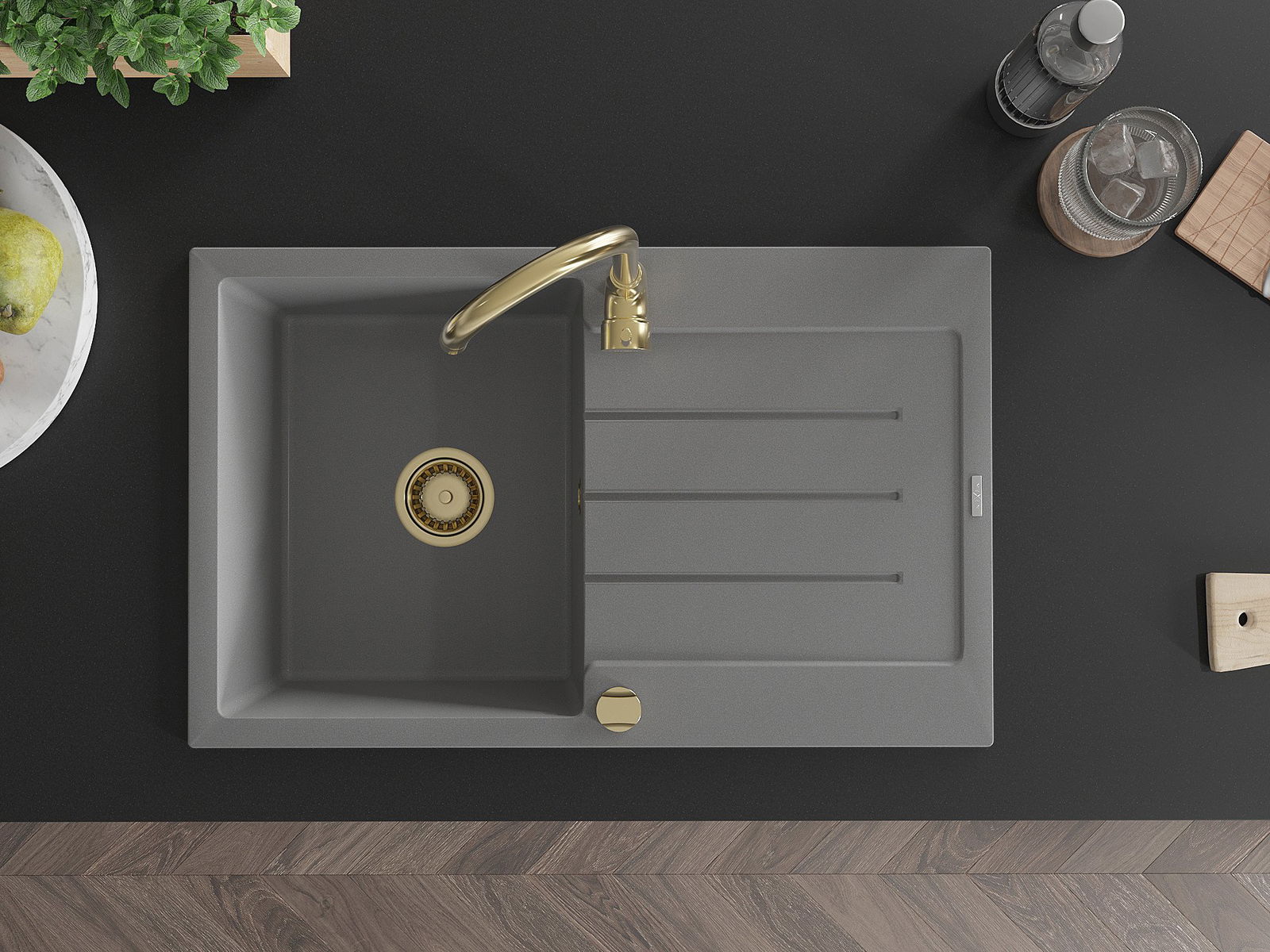 The sink is made of high quality granite. It is an elegant and, above all, practical complement to every kitchen, regardless of its style. High quality and granite durability ensure many years of use.