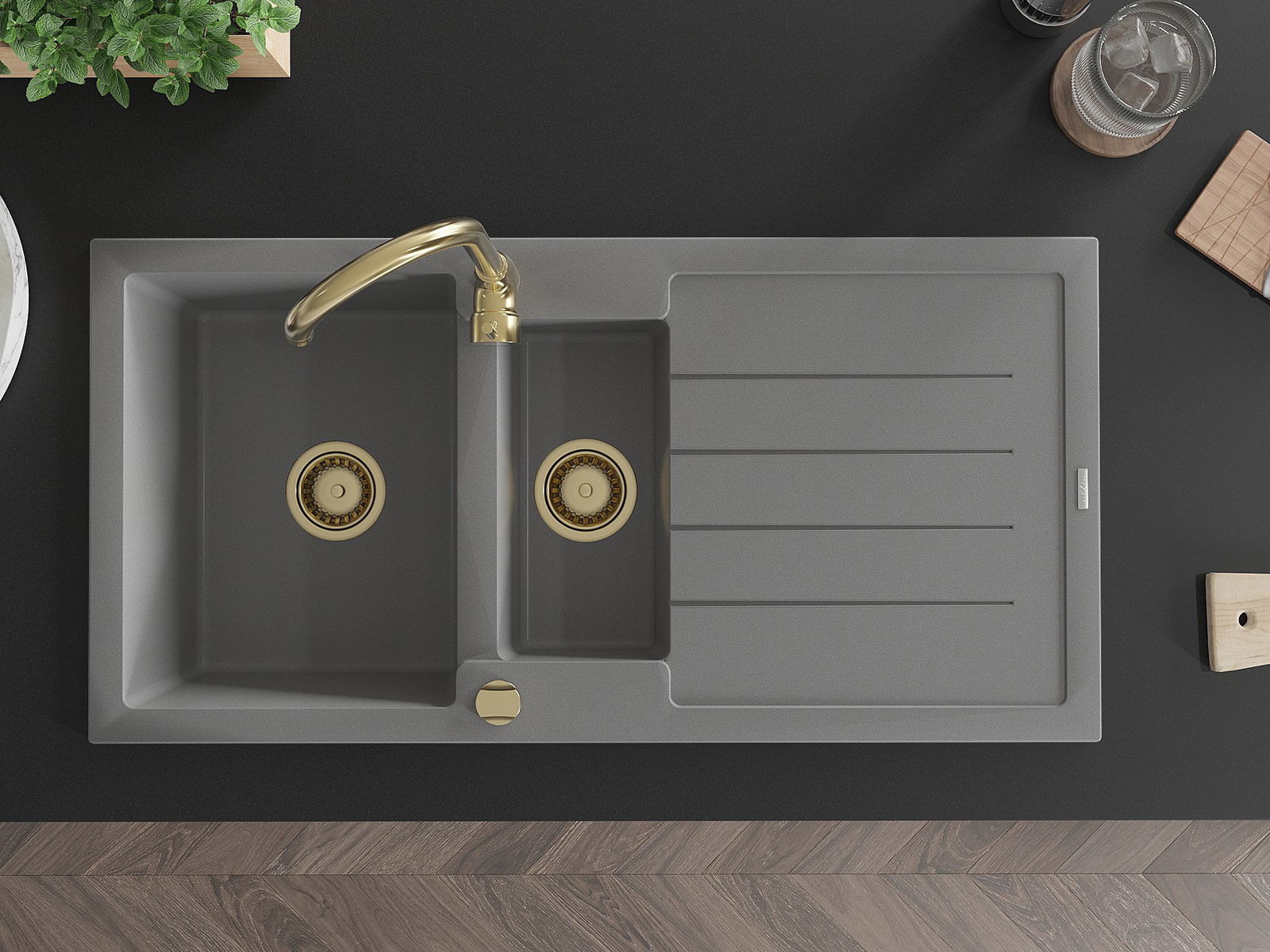 The sink is made of high quality granite. It is an elegant and, above all, practical complement to every kitchen, regardless of its style. High quality and granite durability ensure many years of use.