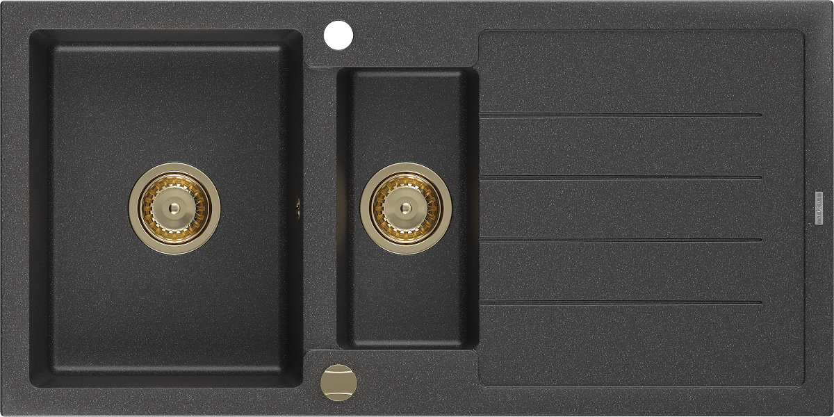 Mexen Andres granite sink 1.5-bowl with drainer 1000 x 500 mm black speckled, golden siphon - 6515101510-76-G