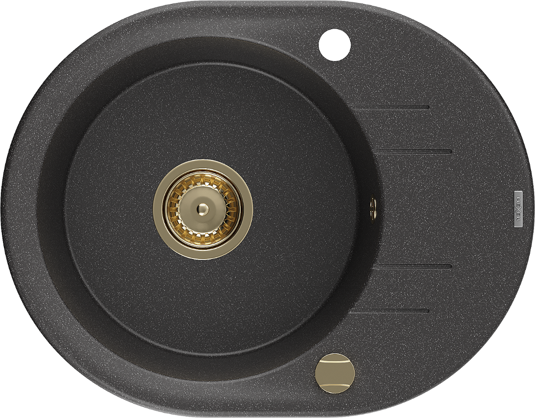 Mexen Kevin 1-bowl granite sink with drainer 586 x 458 mm, black speckled, golden siphon - 6517581005-76-G