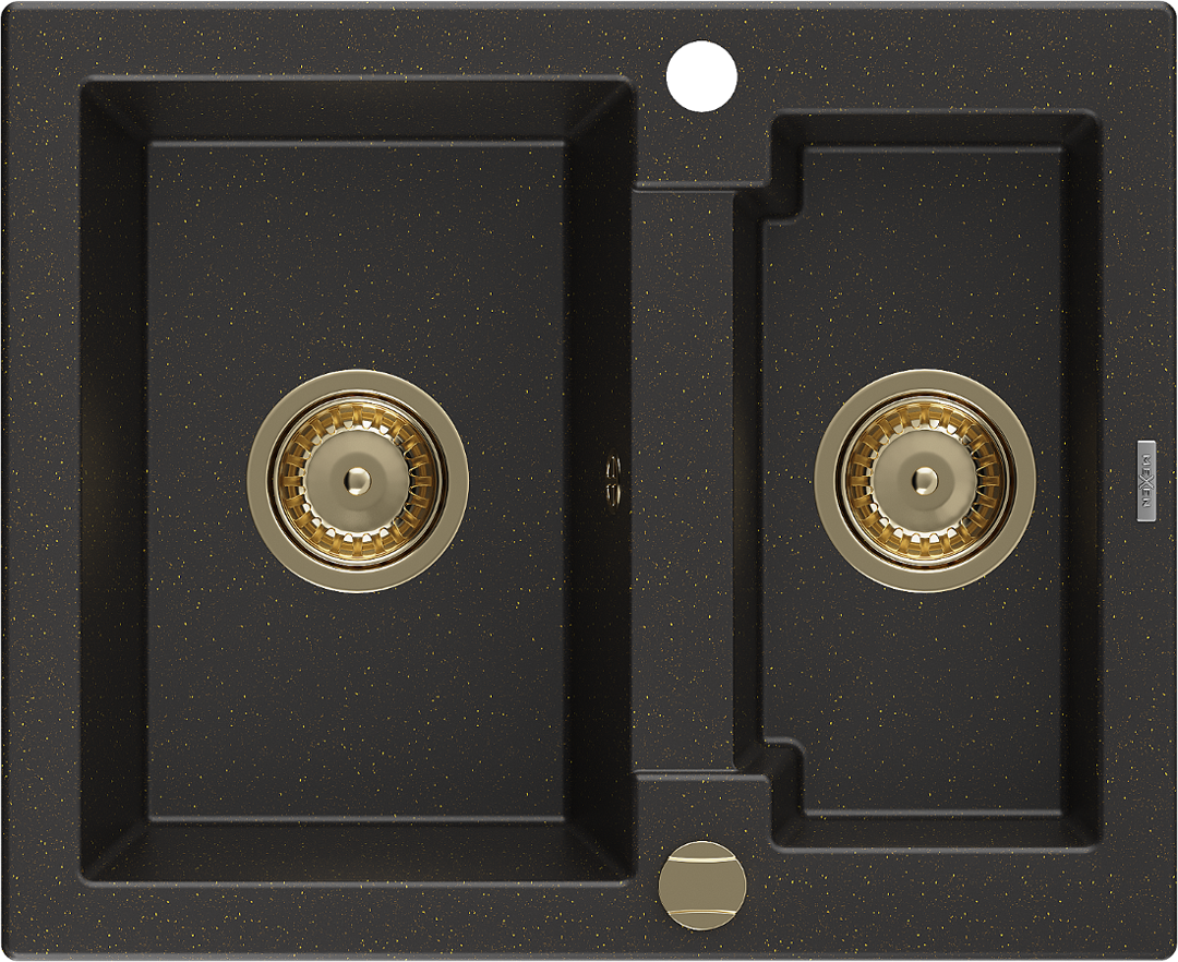 Mexen Carlos granite sink 1.5-bowl 582 x 475 mm, black/gold metallic, gold siphon - 6518581500-75-G