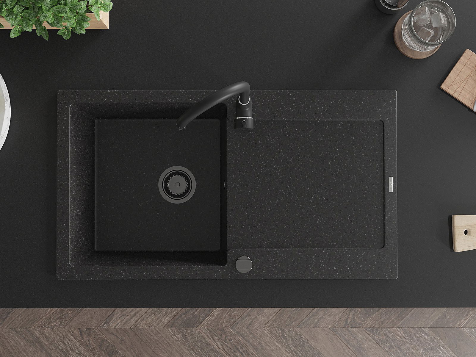 Mexen Leo granite sink 1-bowl with drainer 900 x 500 mm, black/silver metallic, black siphon - 6501901010-73-B