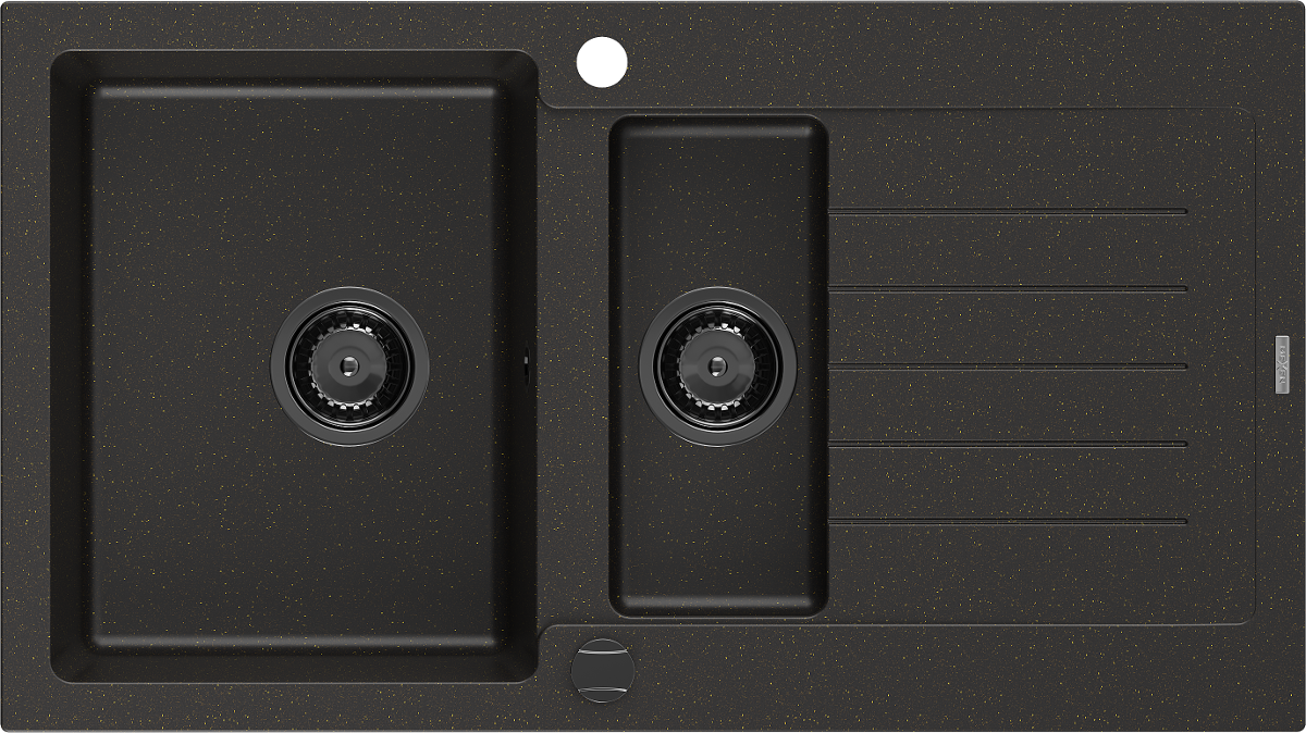 Mexen Matias granite sink 1.5-bowl with drainer 900 x 505 mm, black/gold metallic, black siphon - 6502901505-75-B