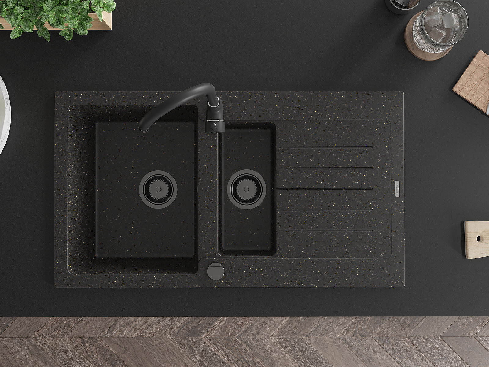 The sink is made of high quality granite. It is an elegant and, above all, practical complement to every kitchen, regardless of its style. High quality and granite durability ensure many years of use.