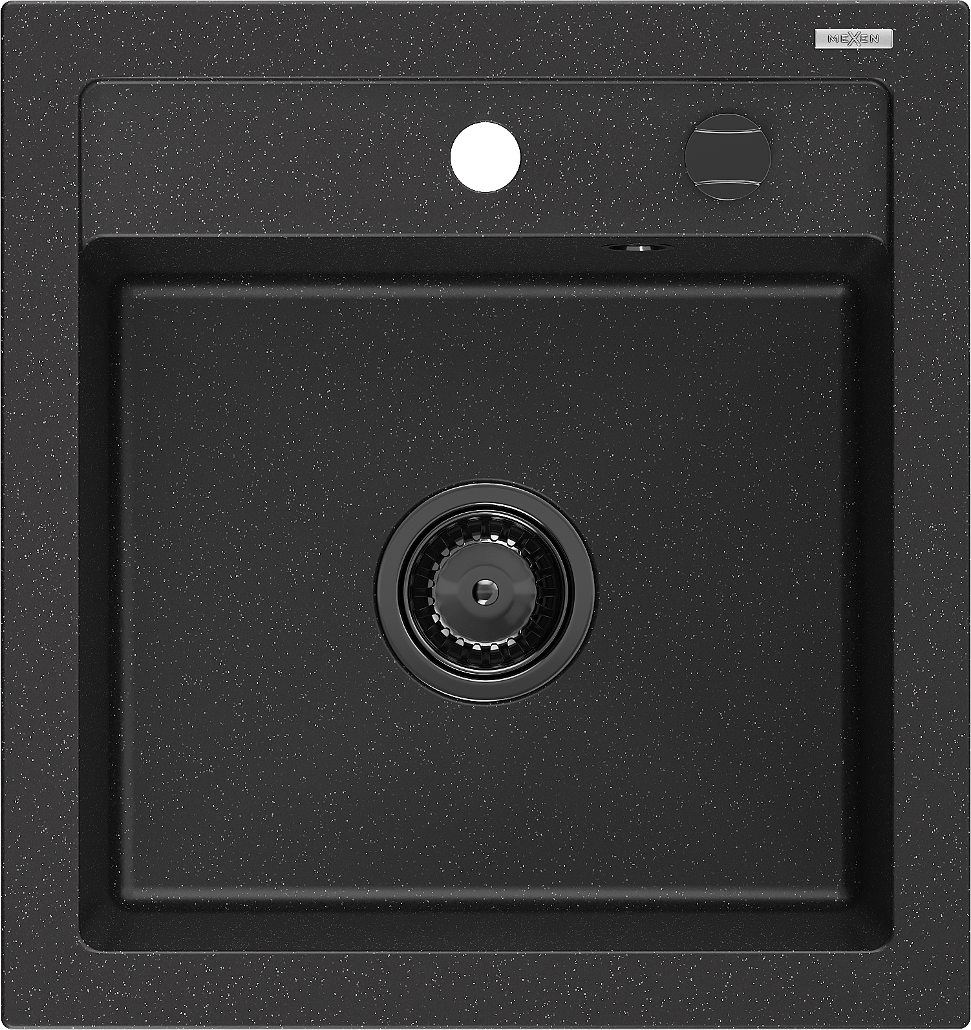 Mexen Vito 1-Bowl Granite Kitchen Sink 520 x 490 mm, Black/Silver Metallic, Black Syphon - 6503521000-73-B