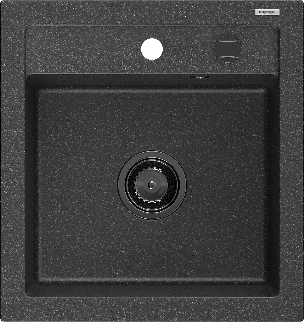 Mexen Vito 1-bowl granite sink 520 x 490 mm, black speckled, black siphon - 6503521000-76-B