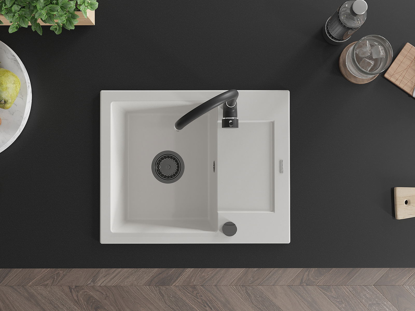 The sink is made of high quality granite. It is an elegant and, above all, practical complement to every kitchen, regardless of its style. High quality and granite durability ensure many years of use.