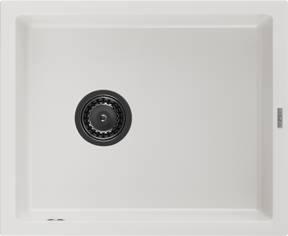 Mexen Pedro 1-bowl Granite Sink 560 x 460 mm, White, Black Siphon - 6508561000-20-B