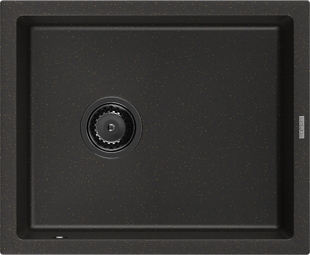 Mexen Pedro 1-bowl granite sink 560 x 460 mm, black/gold metallic, black siphon - 6508561000-75-B