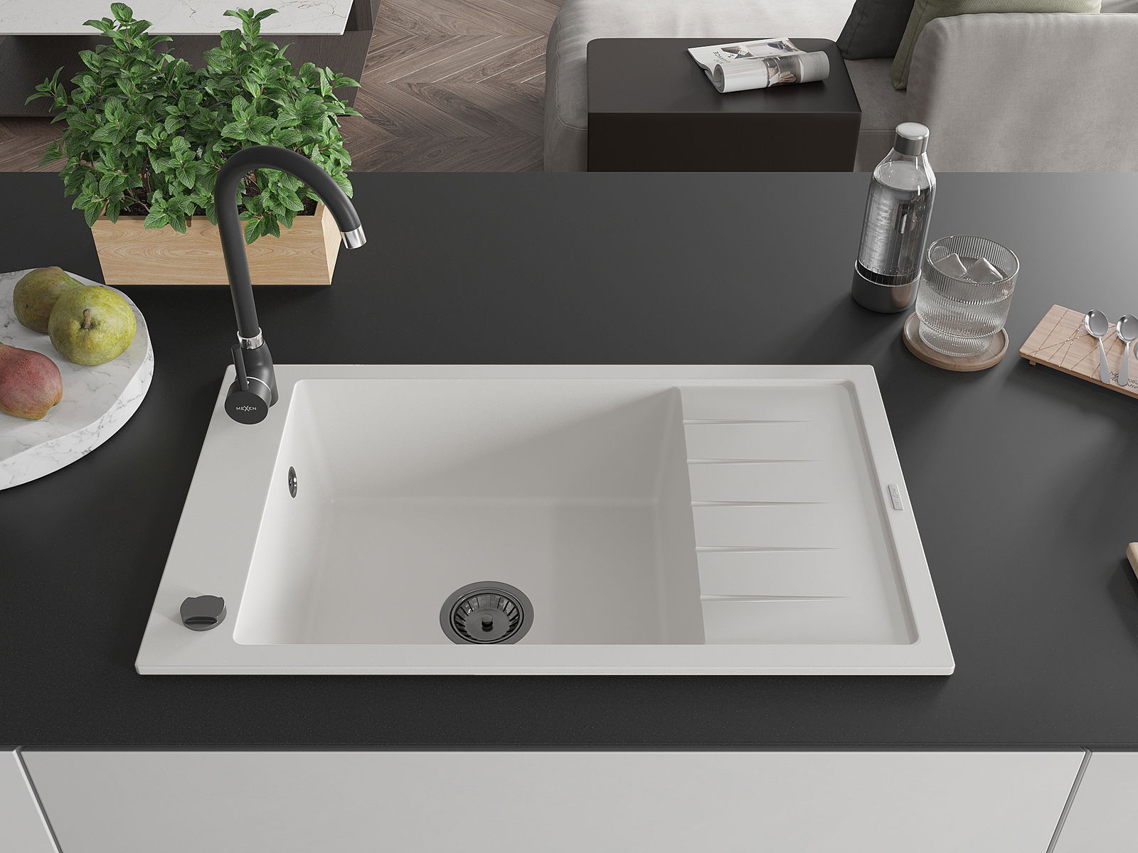 The surface of the sink is resistant to stains and discoloration, thanks to which it is easy to clean and retains its color for a long time. Aesthetic and practically complementing every kitchen.