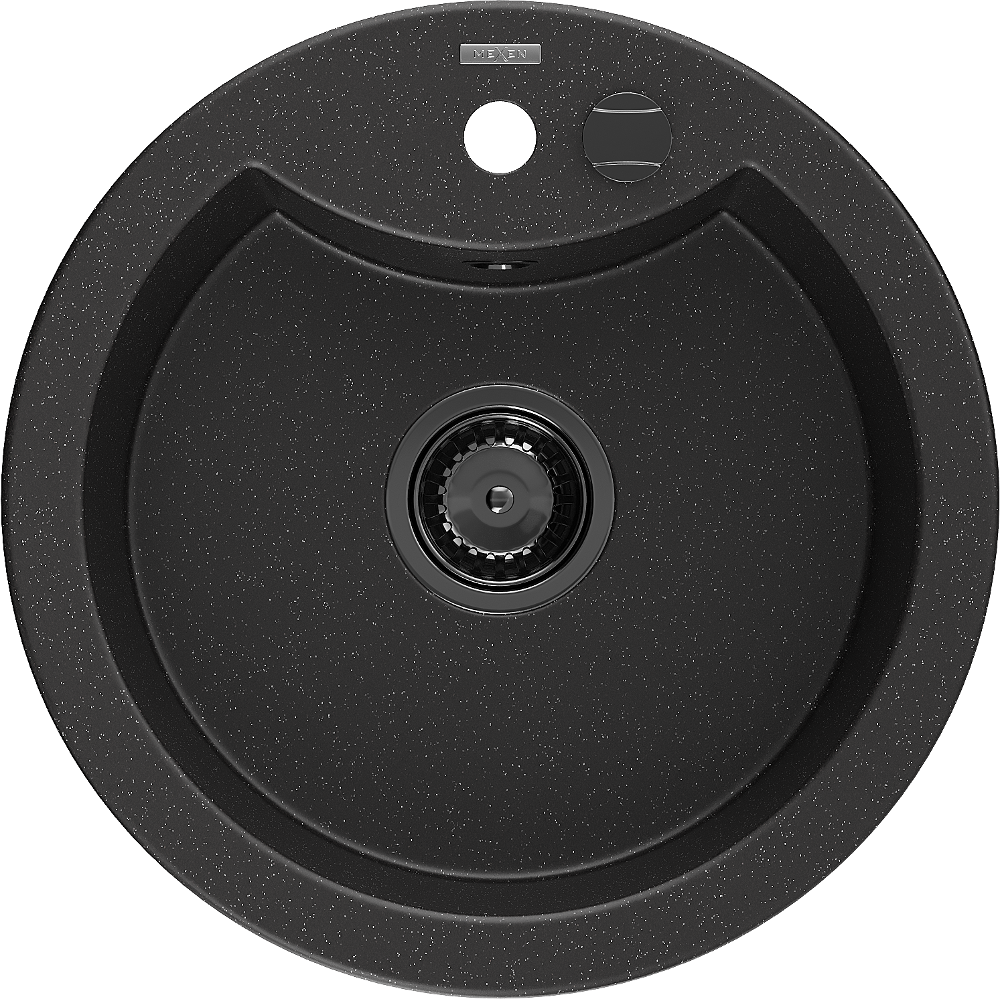 Mexen Diego granite sink 1-bowl 488 x 480 mm, black/silver metallic, black siphon - 6512481000-73-B