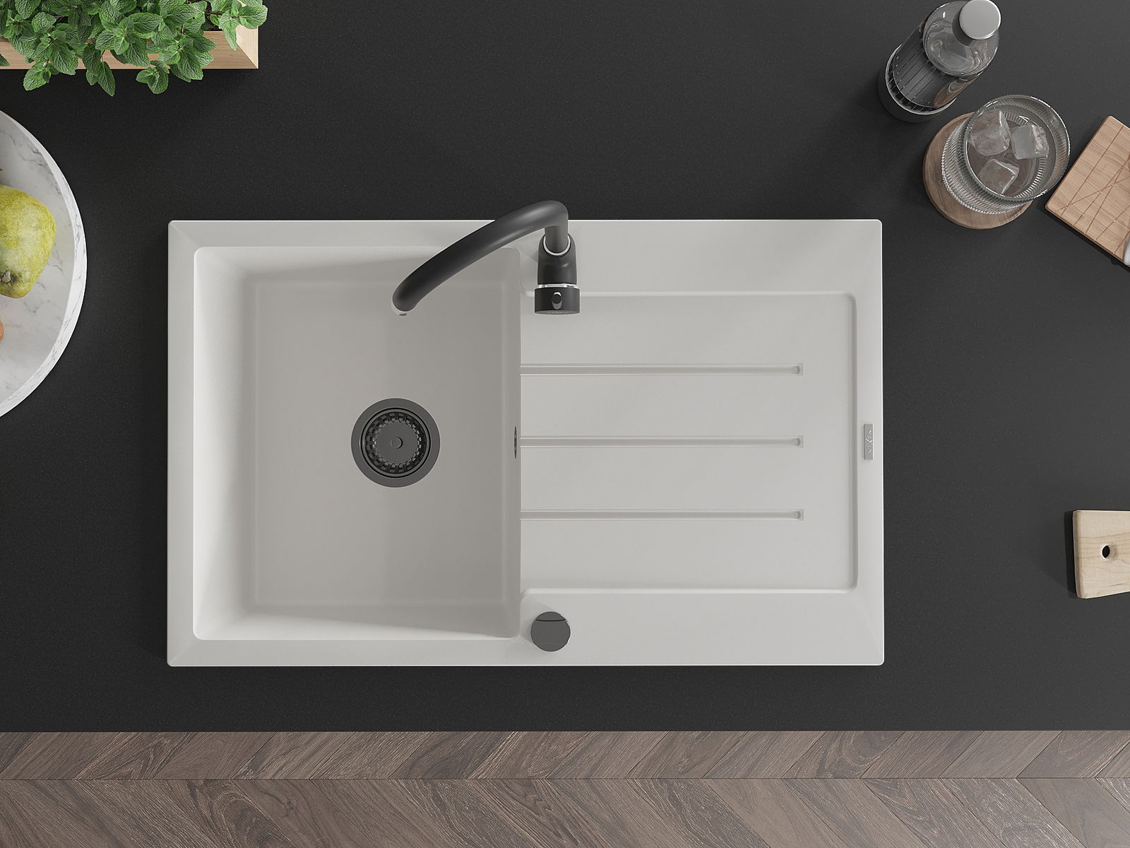 The surface of the sink is resistant to stains and discoloration, thanks to which it is easy to clean and retains its color for a long time. Aesthetic and practically complementing every kitchen.