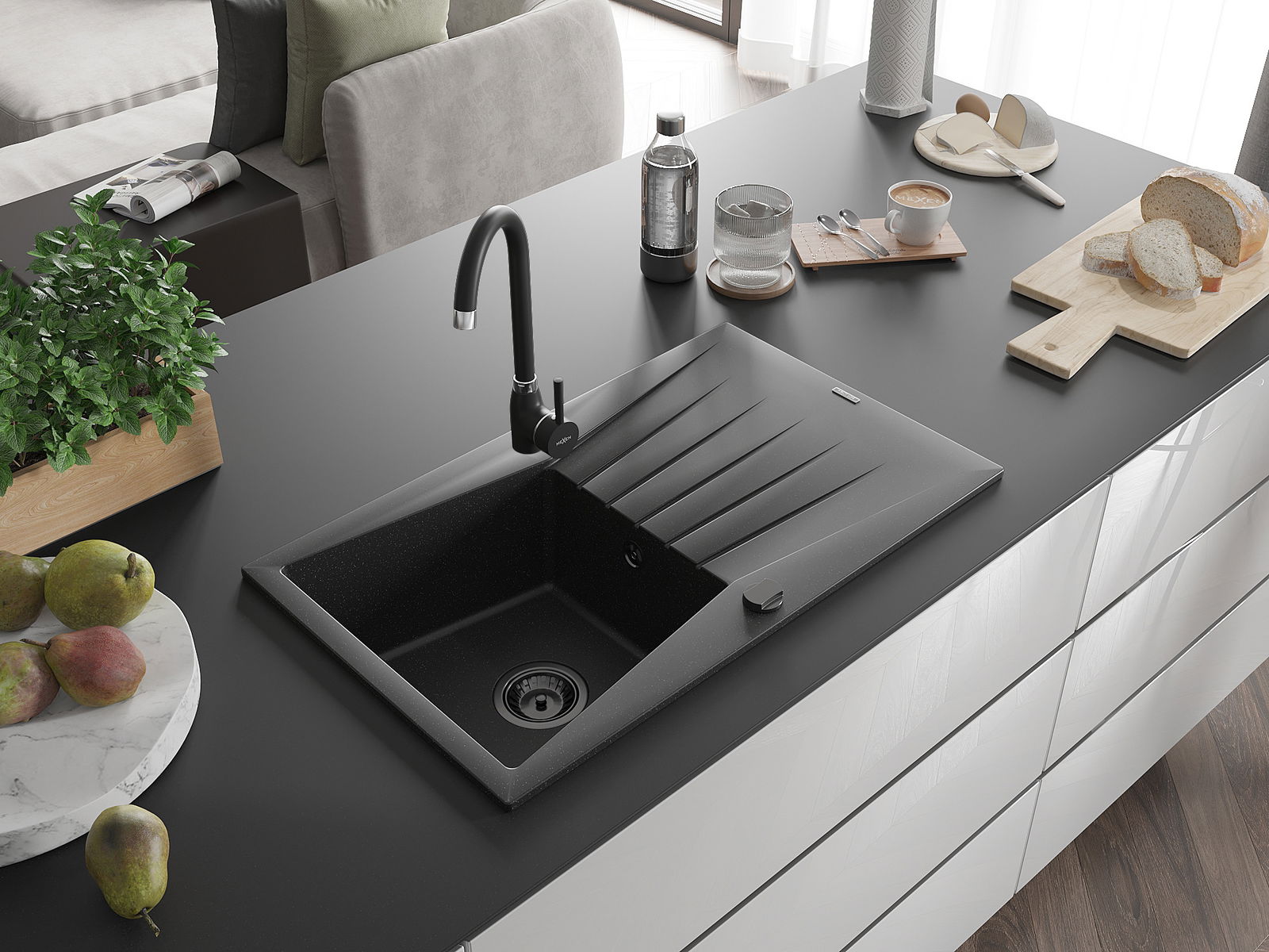 The sink is made of high quality granite. It is an elegant and, above all, practical complement to every kitchen, regardless of its style. High quality and granite durability ensure many years of use.