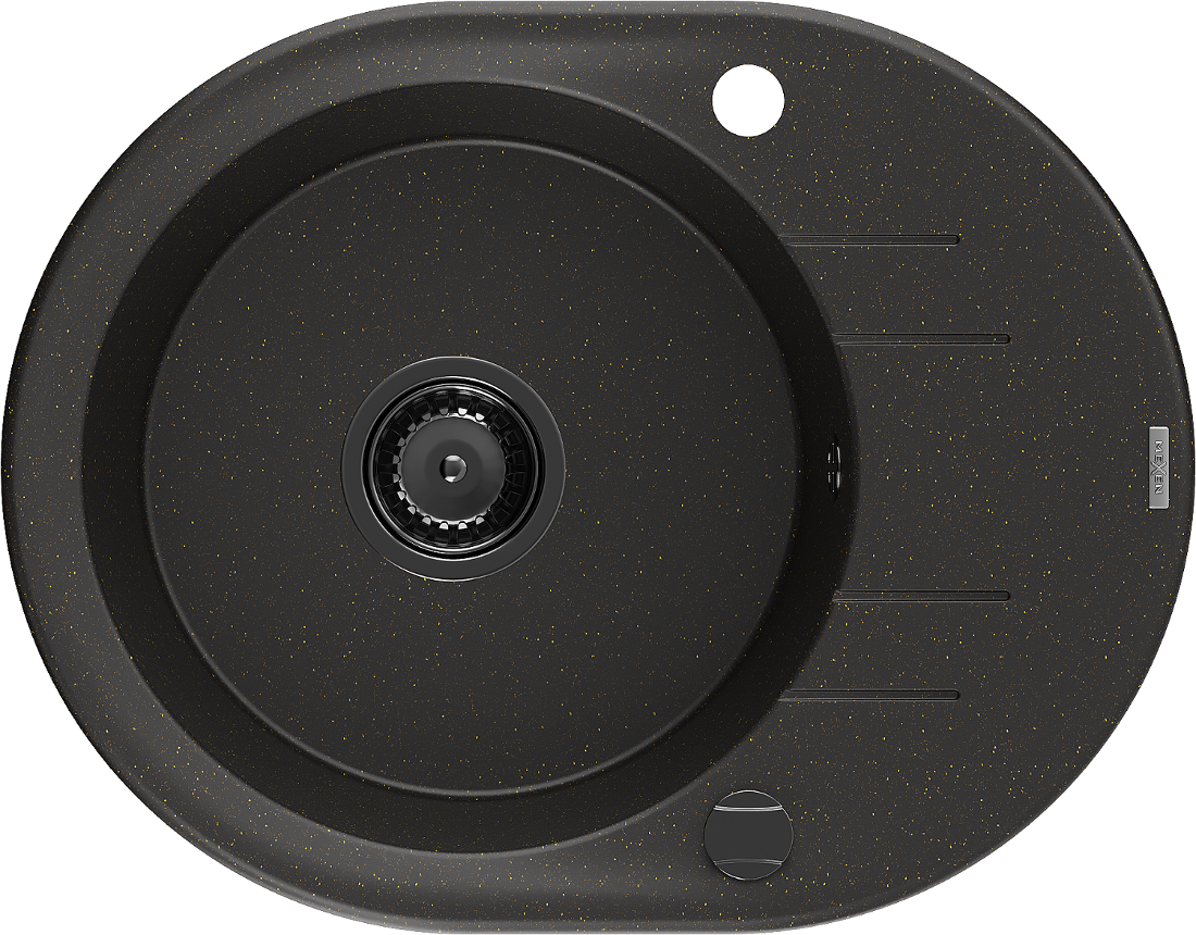 Mexen Kevin granite sink 1-bowl with drainer 586 x 458 mm, black/gold metallic, black siphon - 6517581005-75-B