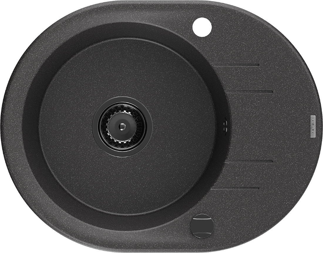 Mexen Kevin granite sink 1-bowl with drainer 586 x 458 mm, black speckled, black siphon - 6517581005-76-B