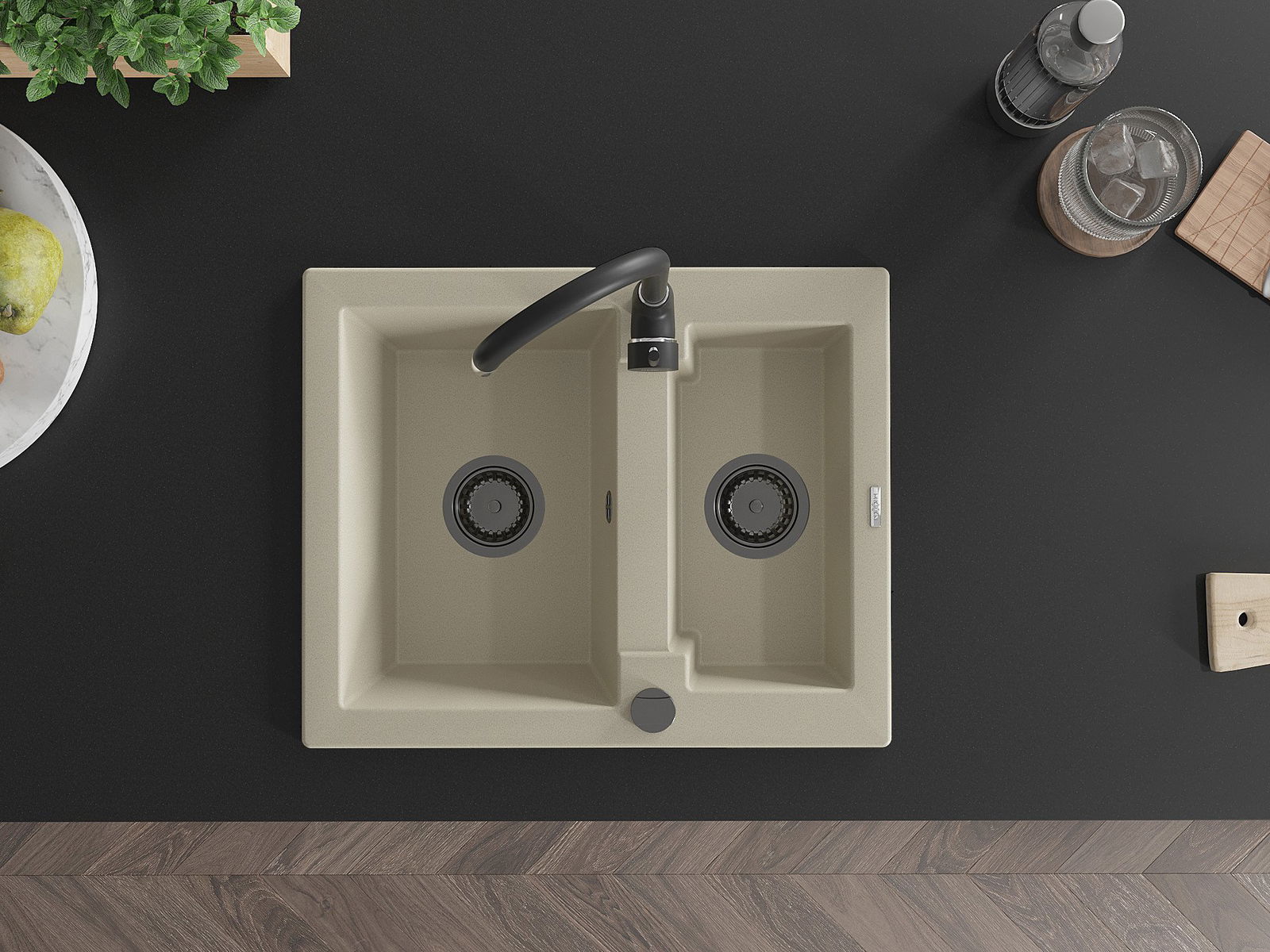 The sink is made of high quality granite. It is an elegant and, above all, practical complement to every kitchen, regardless of its style. High quality and granite durability ensure many years of use.