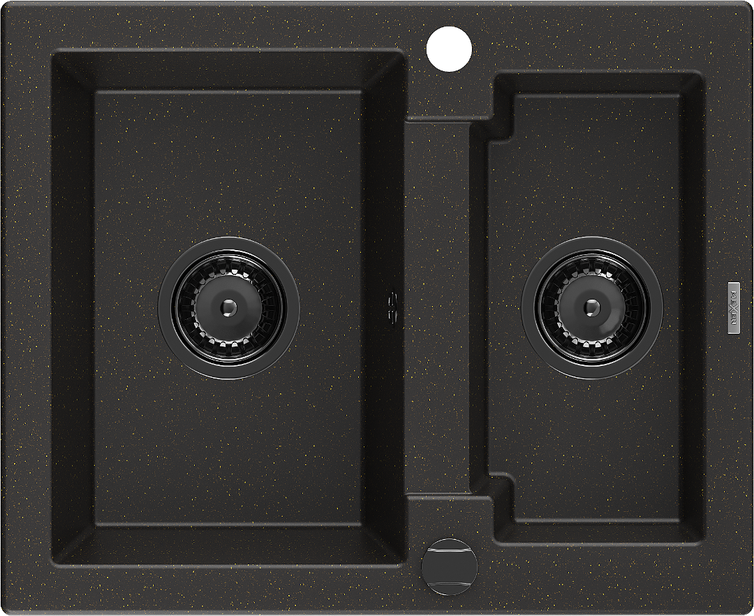 Mexen Carlos granite sink 1.5-bowl 582 x 475 mm, black/gold metallic, black siphon - 6518581500-75-B