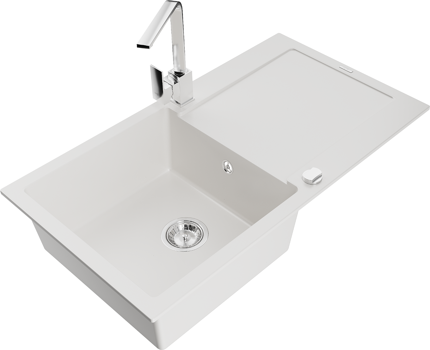 Mexen Leo 1-bowl granite sink with drainer and Rita kitchen tap, white - 6501-20-670300-00