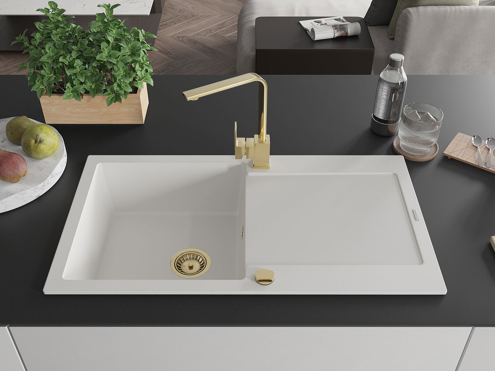 The surface of the sink is resistant to stains and discoloration, thanks to which it is easy to clean and retains its color for a long time. Aesthetic and practically complementing every kitchen.