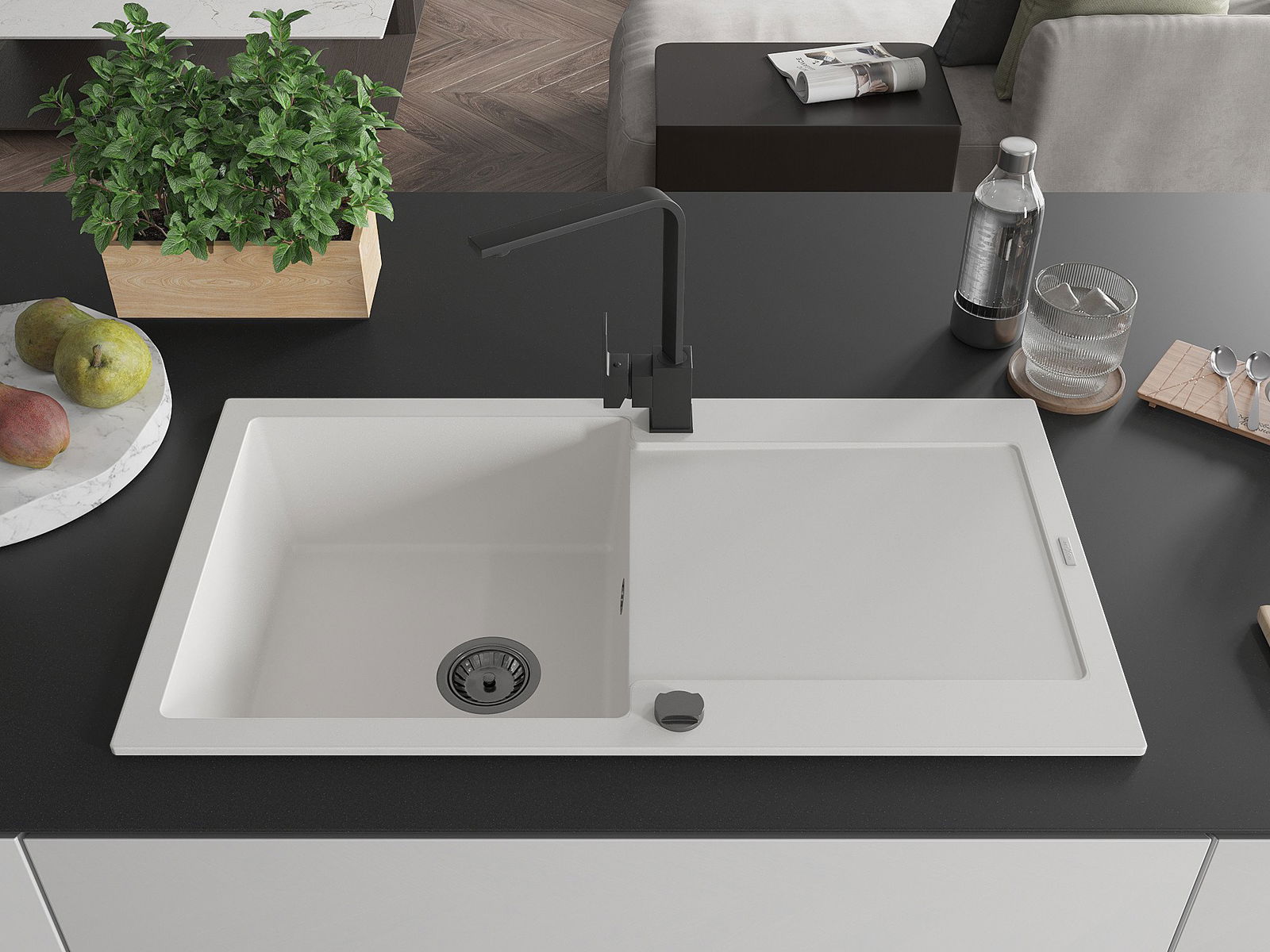 The surface of the sink is resistant to stains and discoloration, thanks to which it is easy to clean and retains its color for a long time. Aesthetic and practically complementing every kitchen.