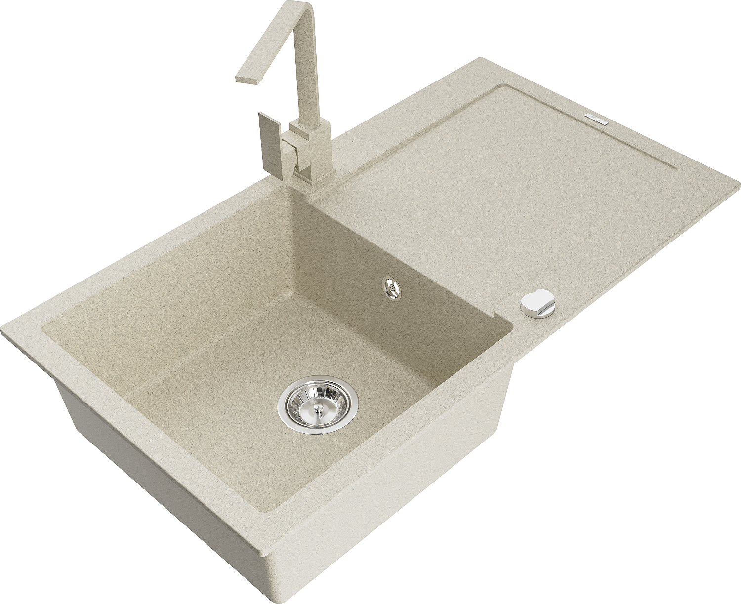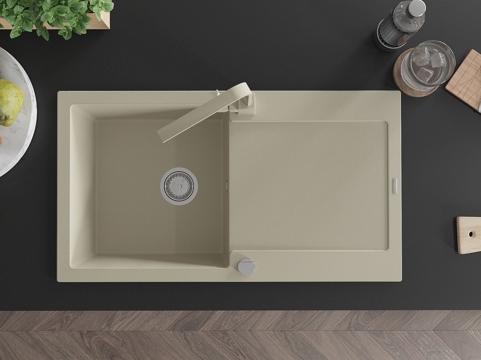 The surface of the sink is resistant to stains and discoloration, thanks to which it is easy to clean and retains its color for a long time. Aesthetic and practically complementing every kitchen.