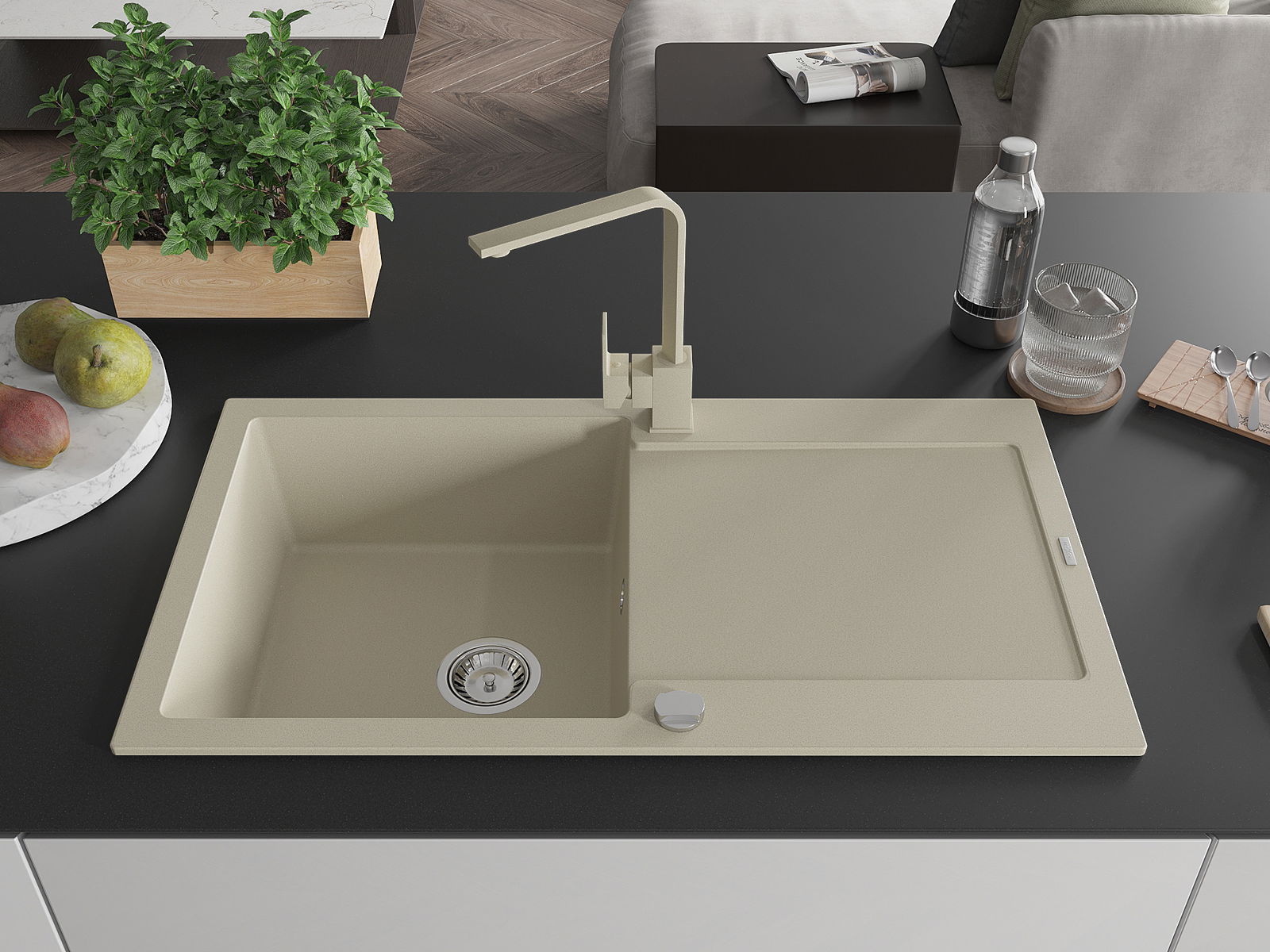 The sink is made of high quality granite. It is an elegant and, above all, practical complement to every kitchen, regardless of its style. High quality and granite durability ensure many years of use.