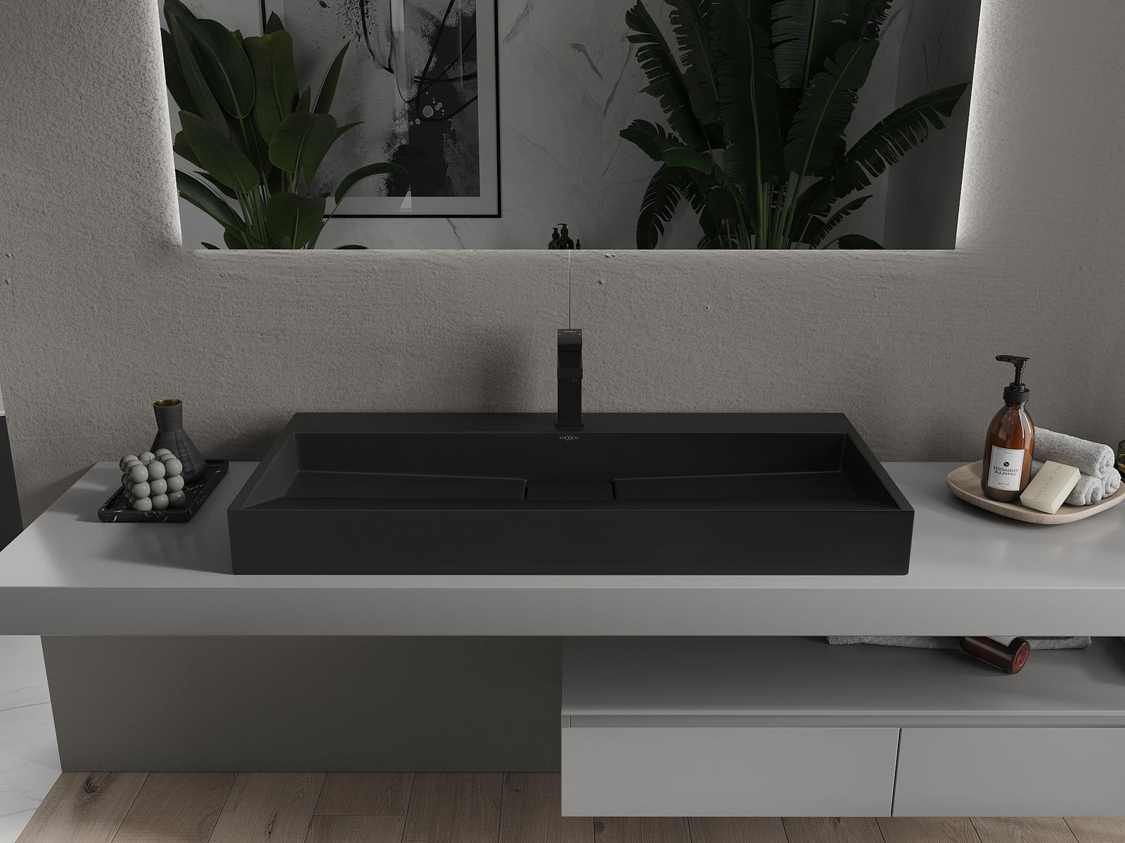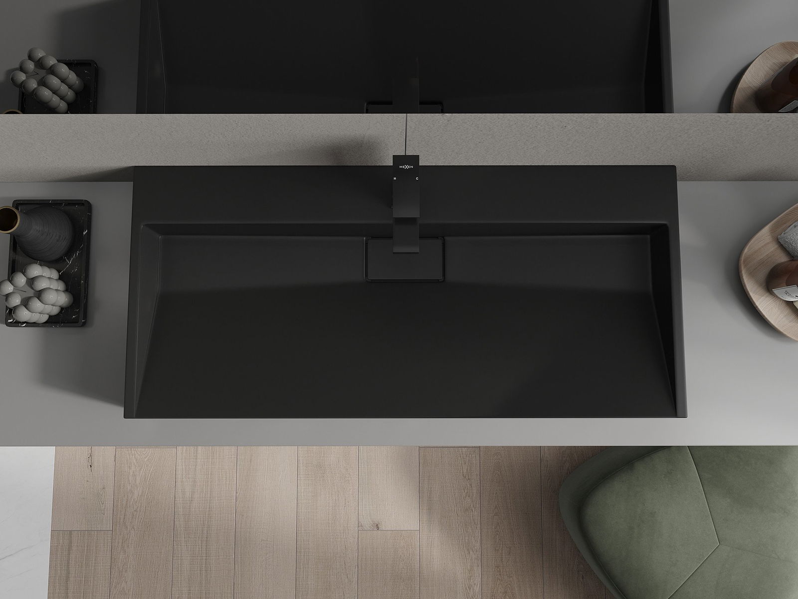 Mexen Ava countertop washbasin made of conglomerate 1/O 100 x 46 cm, black - 23011071