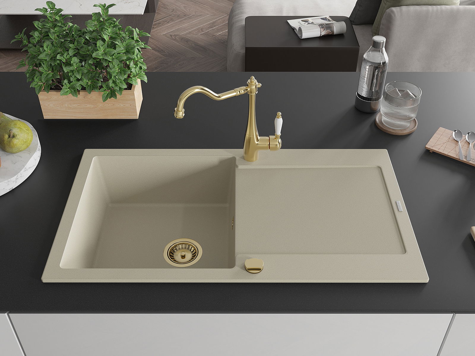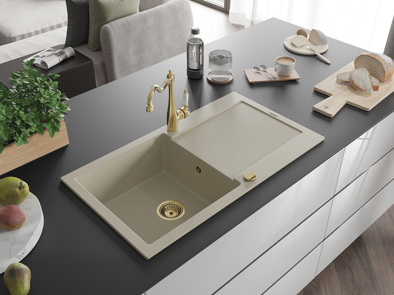 The surface of the sink is resistant to stains and discoloration, thanks to which it is easy to clean and retains its color for a long time. Aesthetic and practically complementing every kitchen.