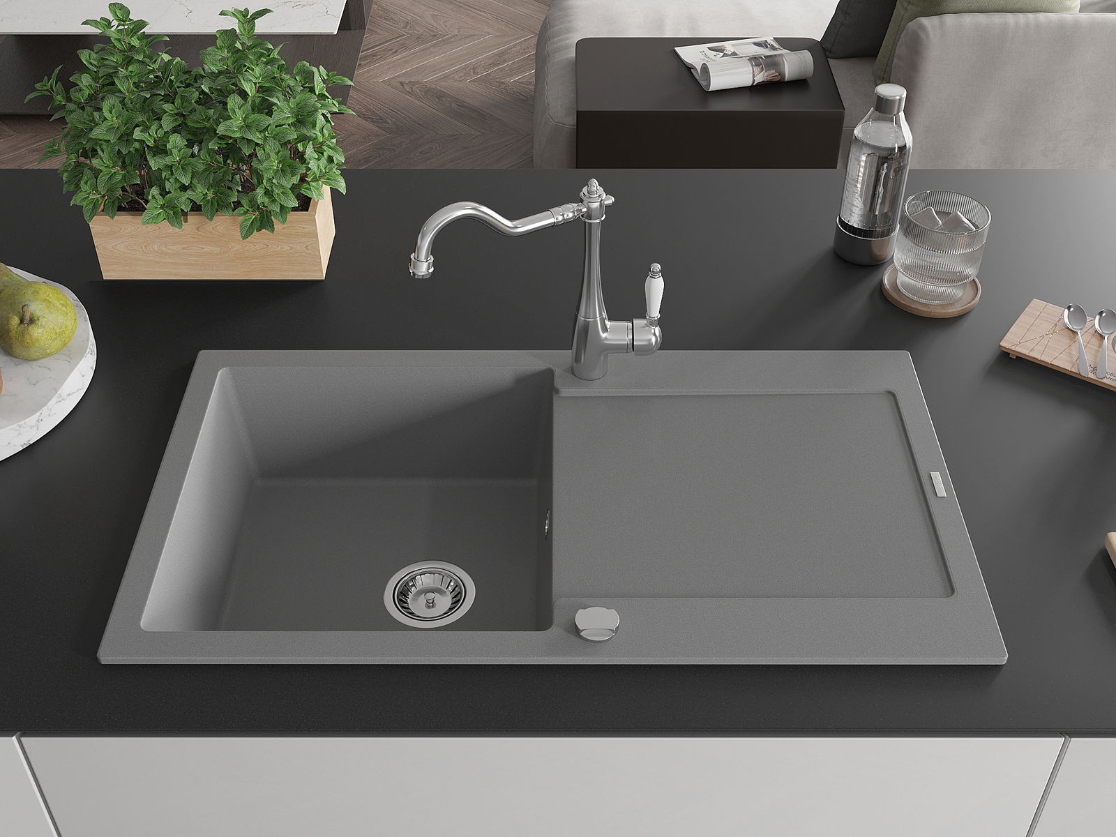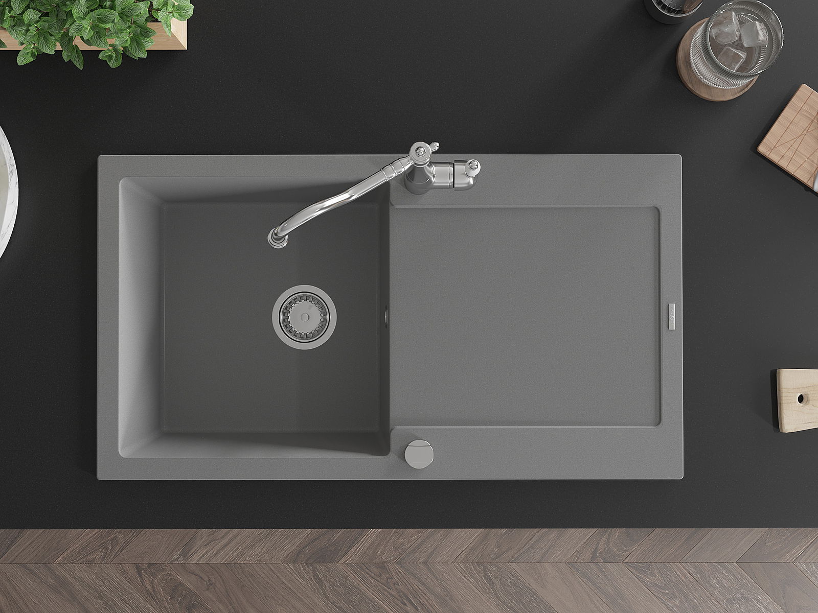 The sink is made of high quality granite. It is an elegant and, above all, practical complement to every kitchen, regardless of its style. High quality and granite durability ensure many years of use.