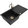 Mexen Leo granite sink 1-bowl with drainer and Carla kitchen tap, grey - 6501-71-670700-50