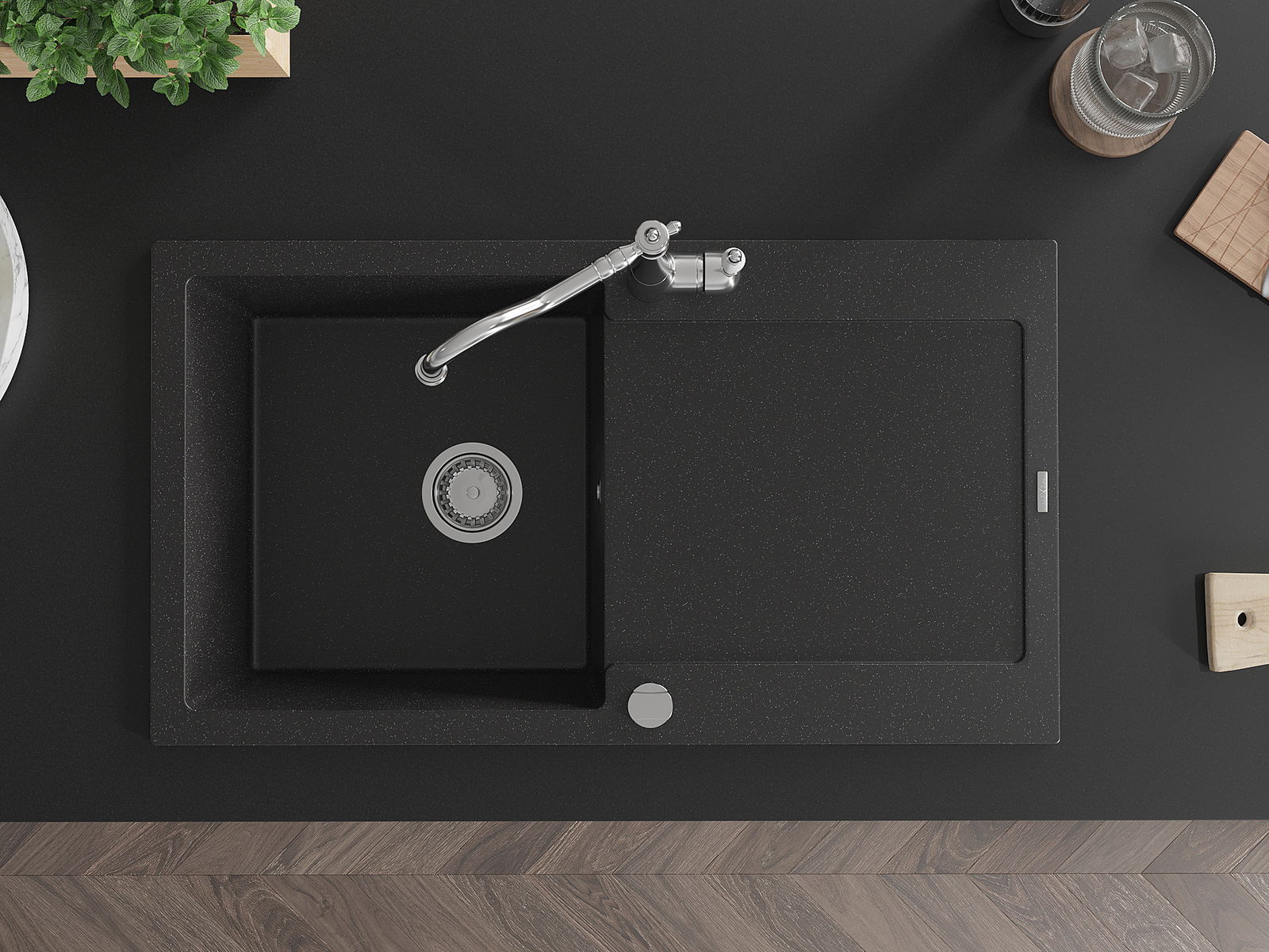 The sink is made of high quality granite. It is an elegant and, above all, practical complement to every kitchen, regardless of its style. High quality and granite durability ensure many years of use.