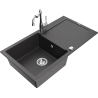 Mexen Leo granite sink 1-bowl with drainer and Carla kitchen tap, black/silver metallic - 6501-73-670700-00