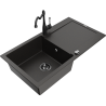Mexen Leo granite sink 1-bowl with drainer and Carla kitchen tap, black/silver metallic - 6501-73-670700-70-B