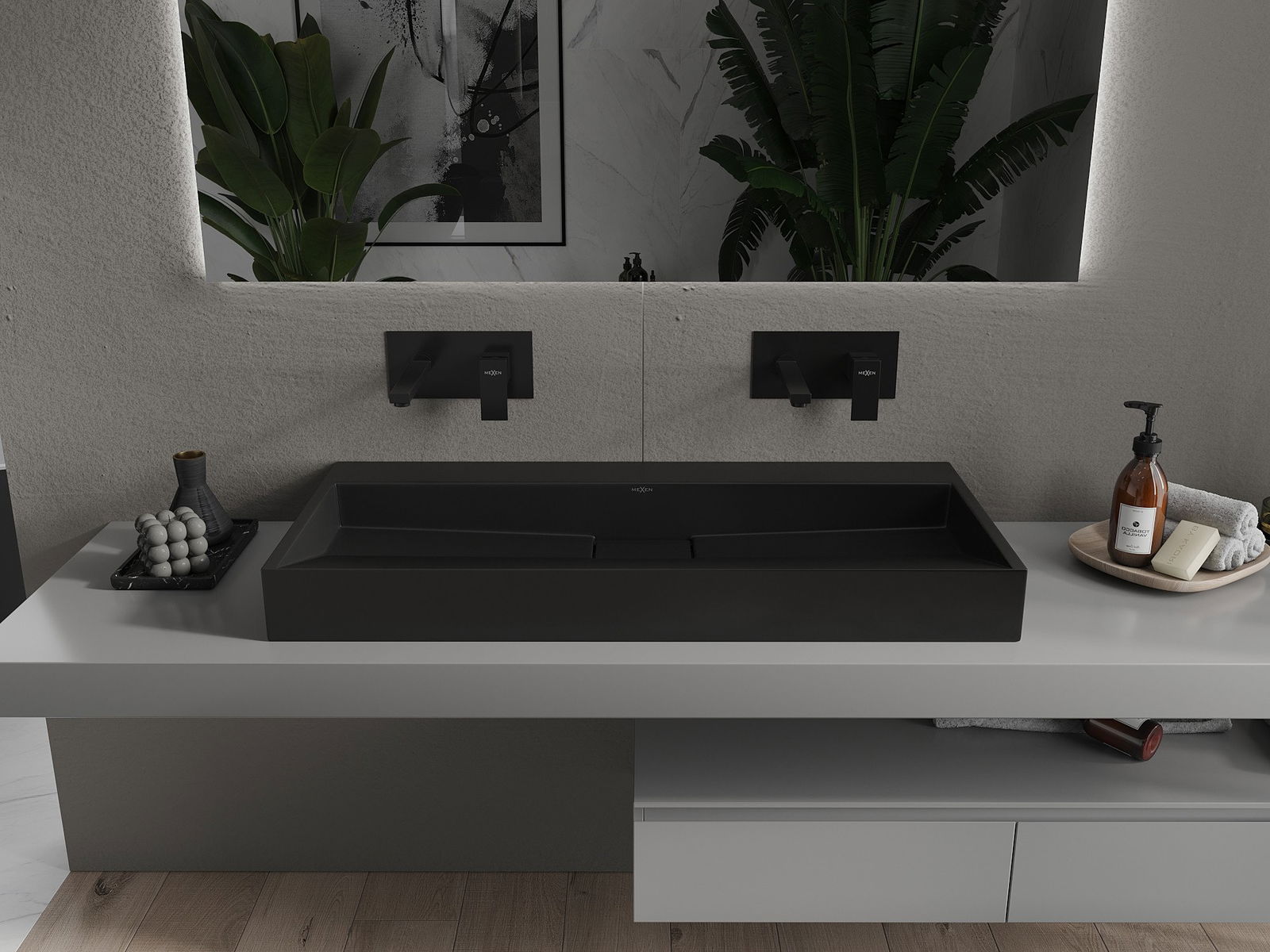 Mexen Ava countertop basin made of conglomerate B/O 100 x 46 cm, black - 23011070
