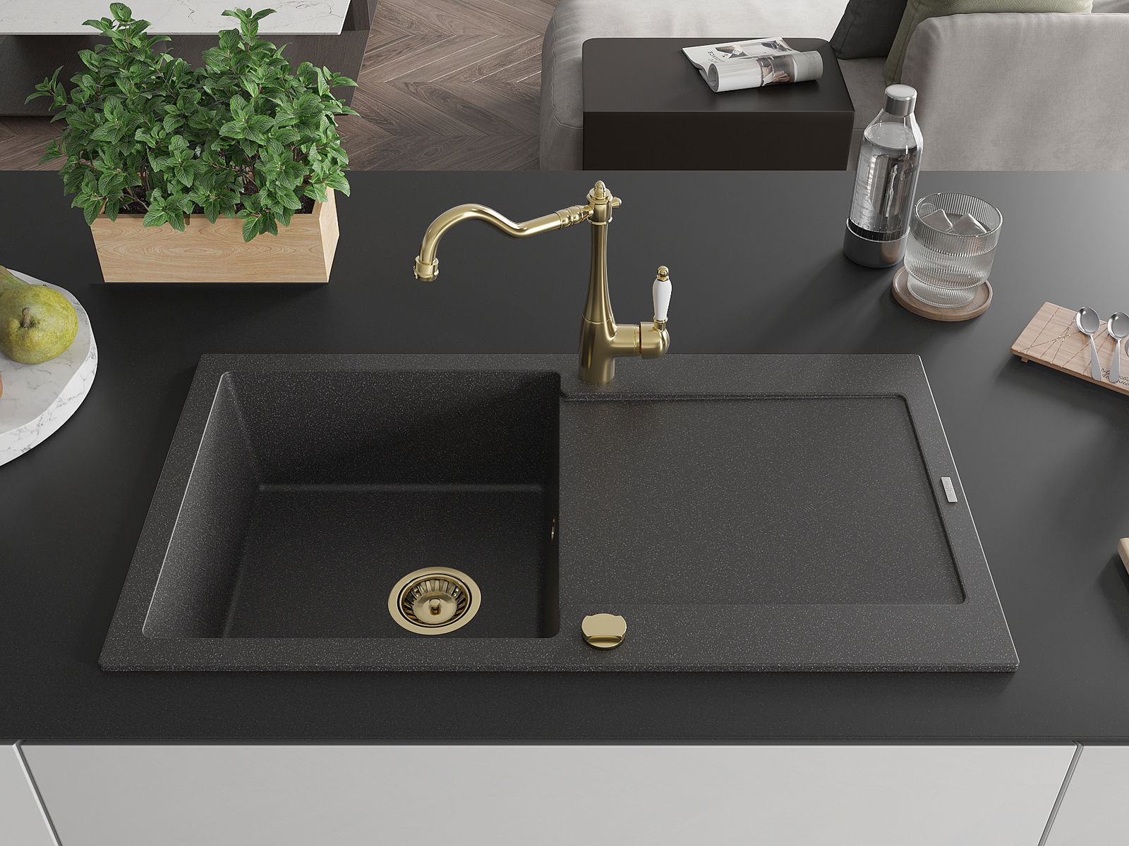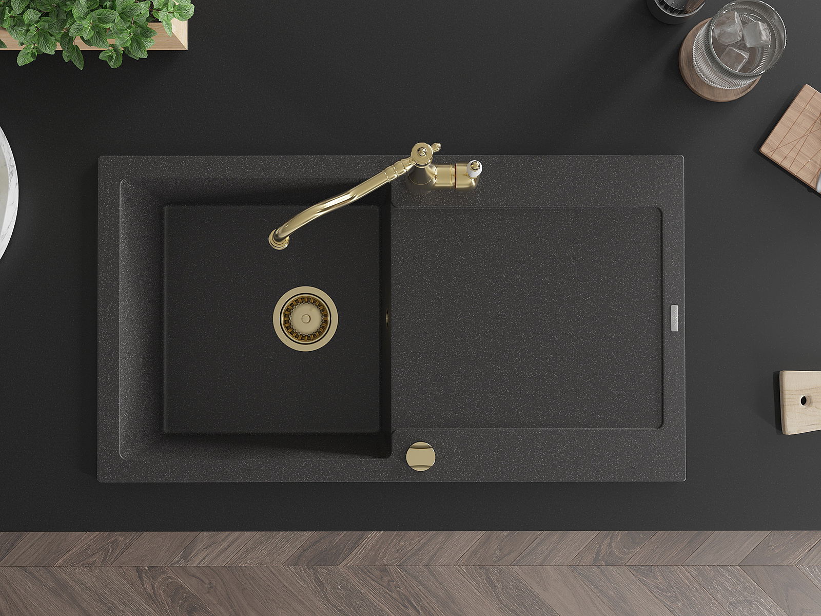 The sink is made of high quality granite. It is an elegant and, above all, practical complement to every kitchen, regardless of its style. High quality and granite durability ensure many years of use.