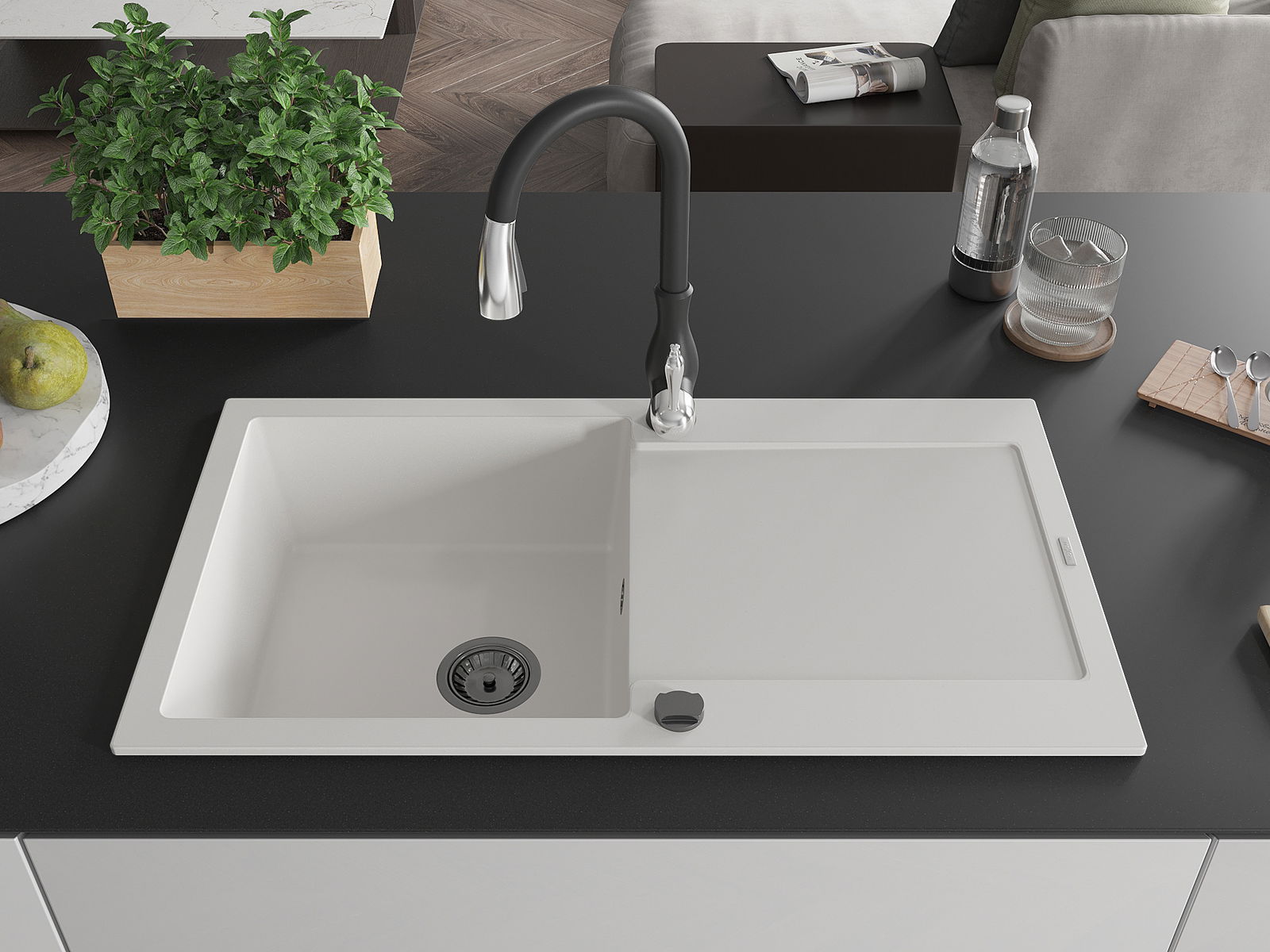 The surface of the sink is resistant to stains and discoloration, thanks to which it is easy to clean and retains its color for a long time. Aesthetic and practically complementing every kitchen.