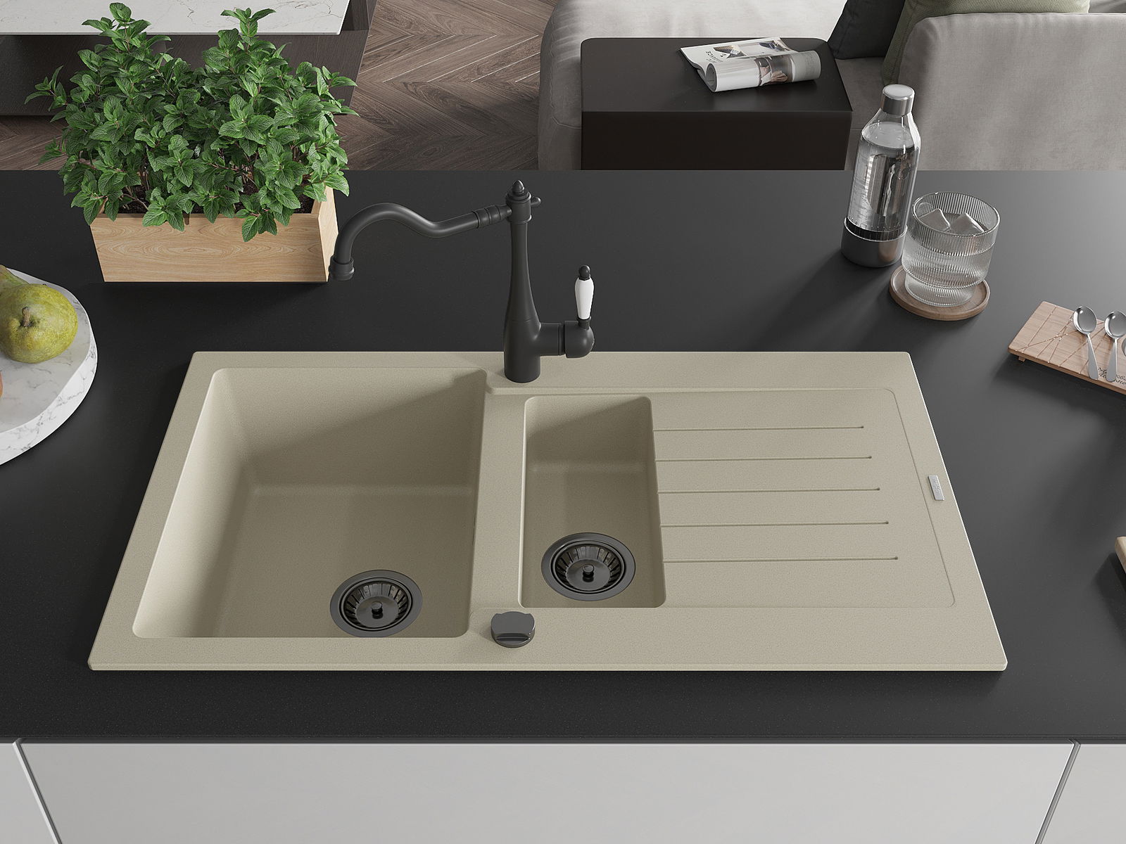 The surface of the sink is resistant to stains and discoloration, thanks to which it is easy to clean and retains its color for a long time. Aesthetic and practically complementing every kitchen.
