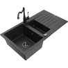 Mexen Matias granite sink 1.5-bowl with drainer and Carla kitchen tap, grey - 6502-71-670700-70-B