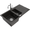 Mexen Matias granite sink 1.5-bowl with drainer and Carla kitchen tap black/silver metallic - 6502-73-670700-00