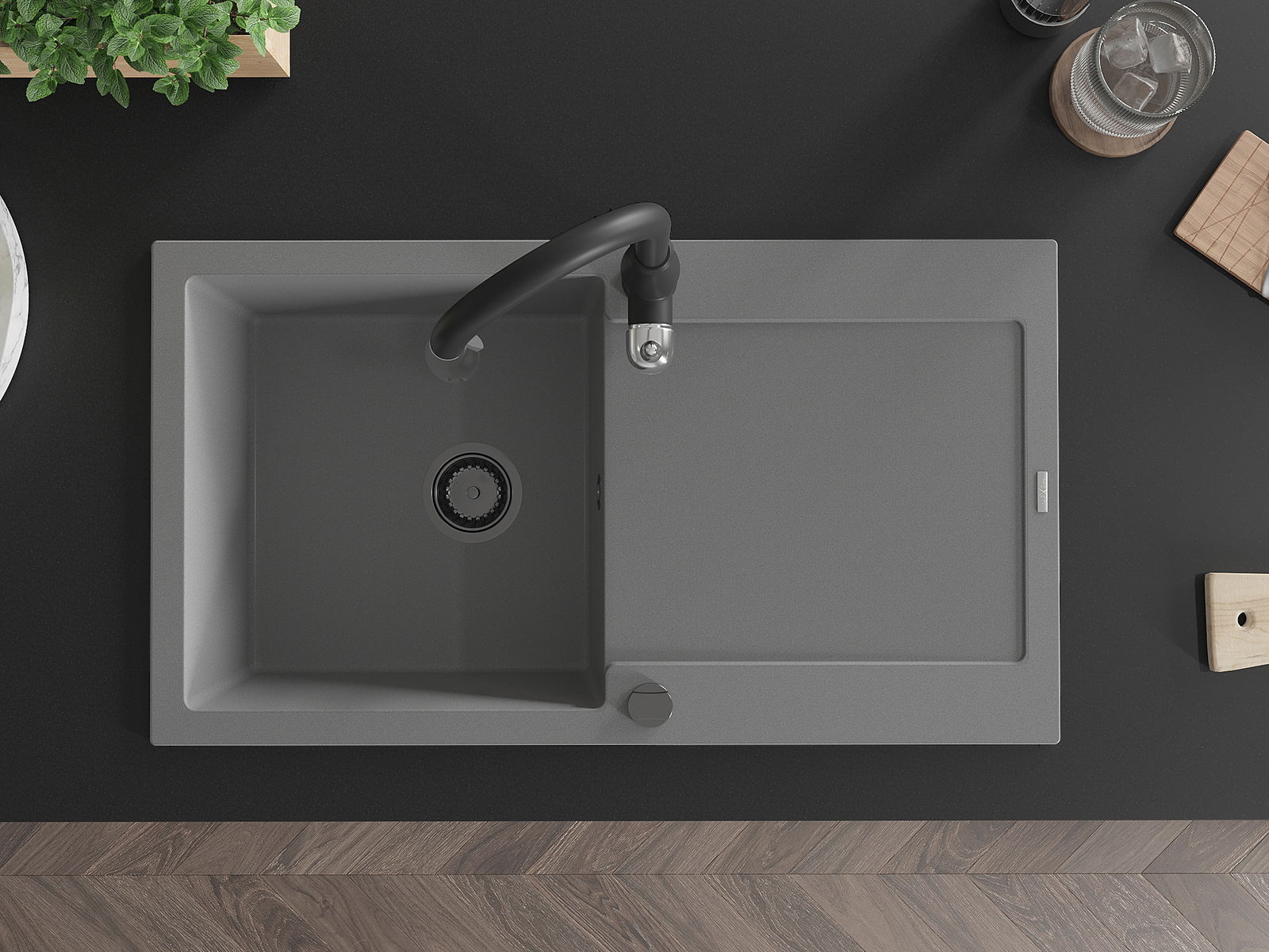 The sink is made of high quality granite. It is an elegant and, above all, practical complement to every kitchen, regardless of its style. High quality and granite durability ensure many years of use.