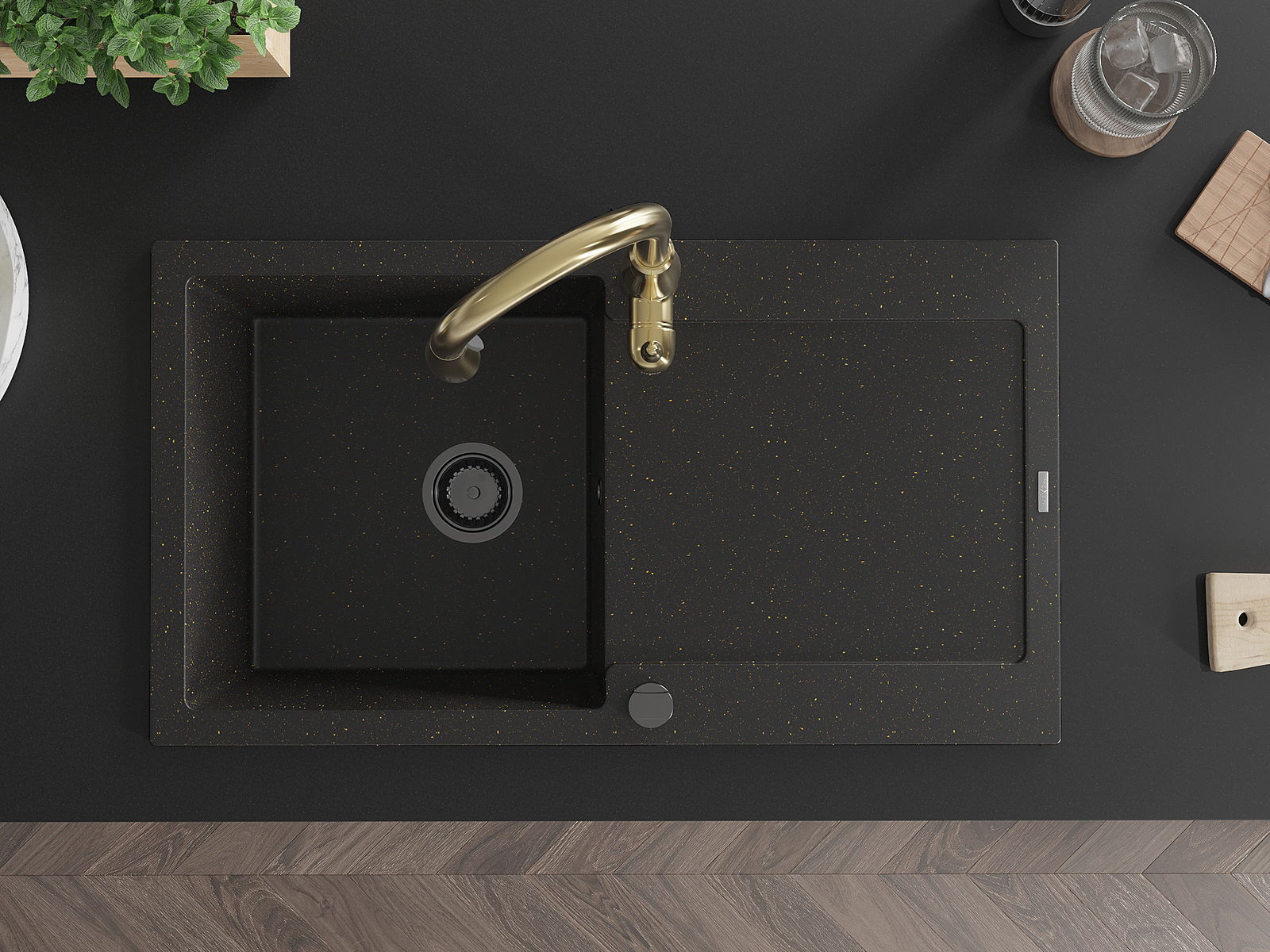 The sink is made of high quality granite. It is an elegant and, above all, practical complement to every kitchen, regardless of its style. High quality and granite durability ensure many years of use.