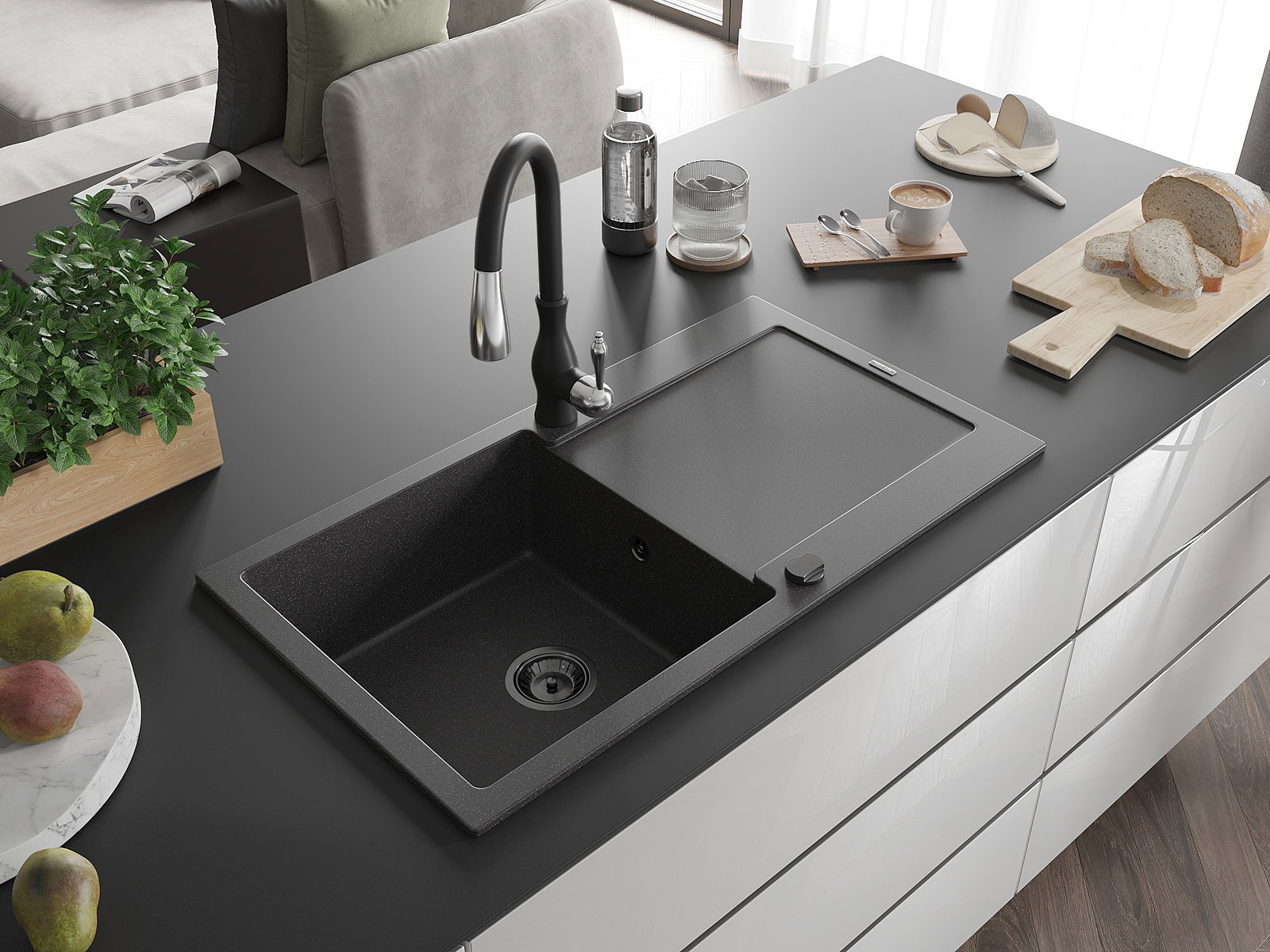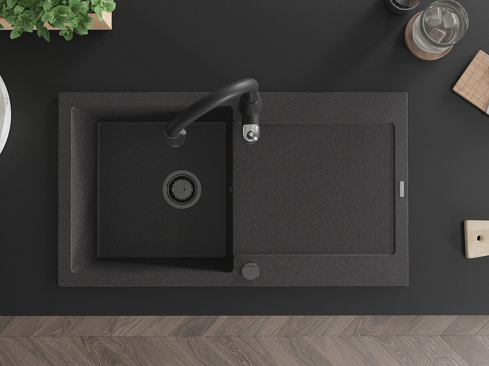 The sink is made of high quality granite. It is an elegant and, above all, practical complement to every kitchen, regardless of its style. High quality and granite durability ensure many years of use.