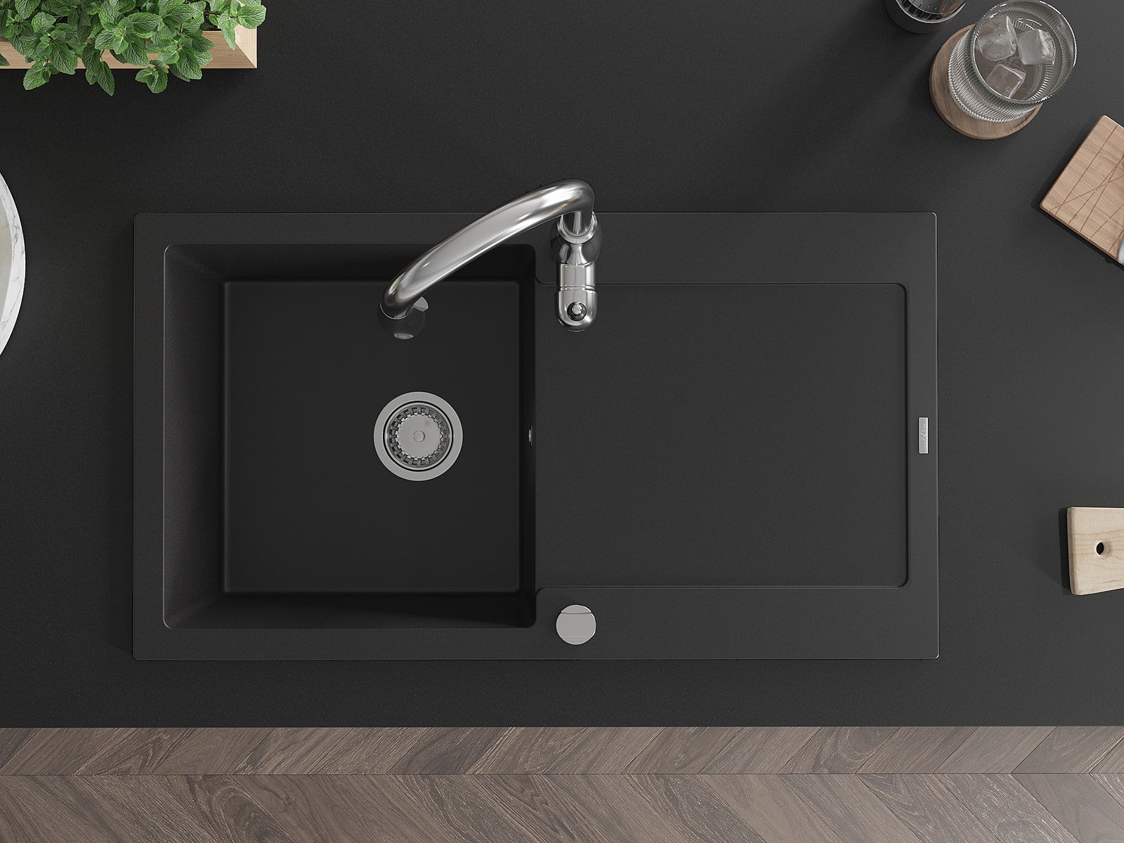 The sink is made of high quality granite. It is an elegant and, above all, practical complement to every kitchen, regardless of its style. High quality and granite durability ensure many years of use.
