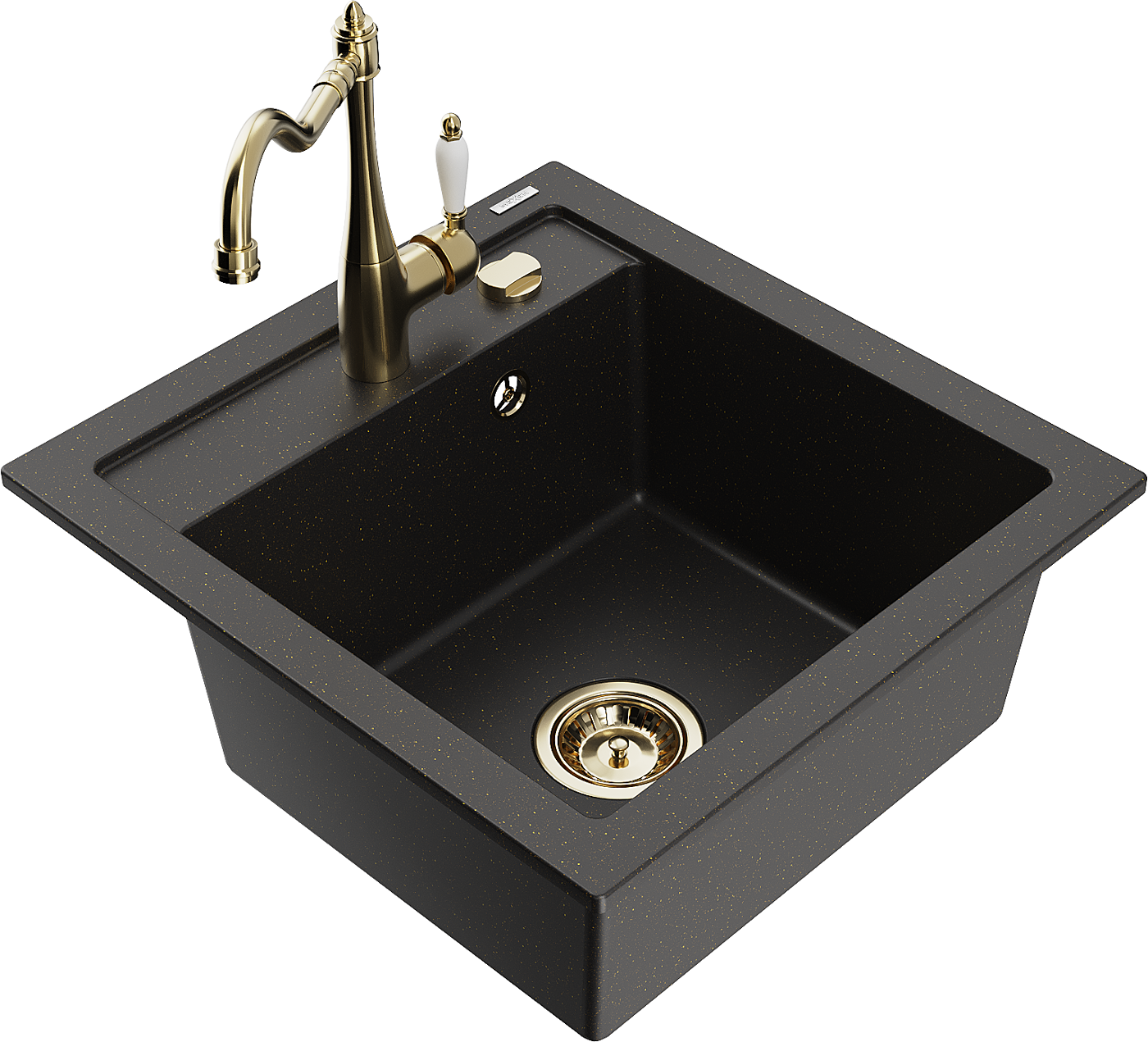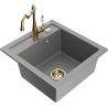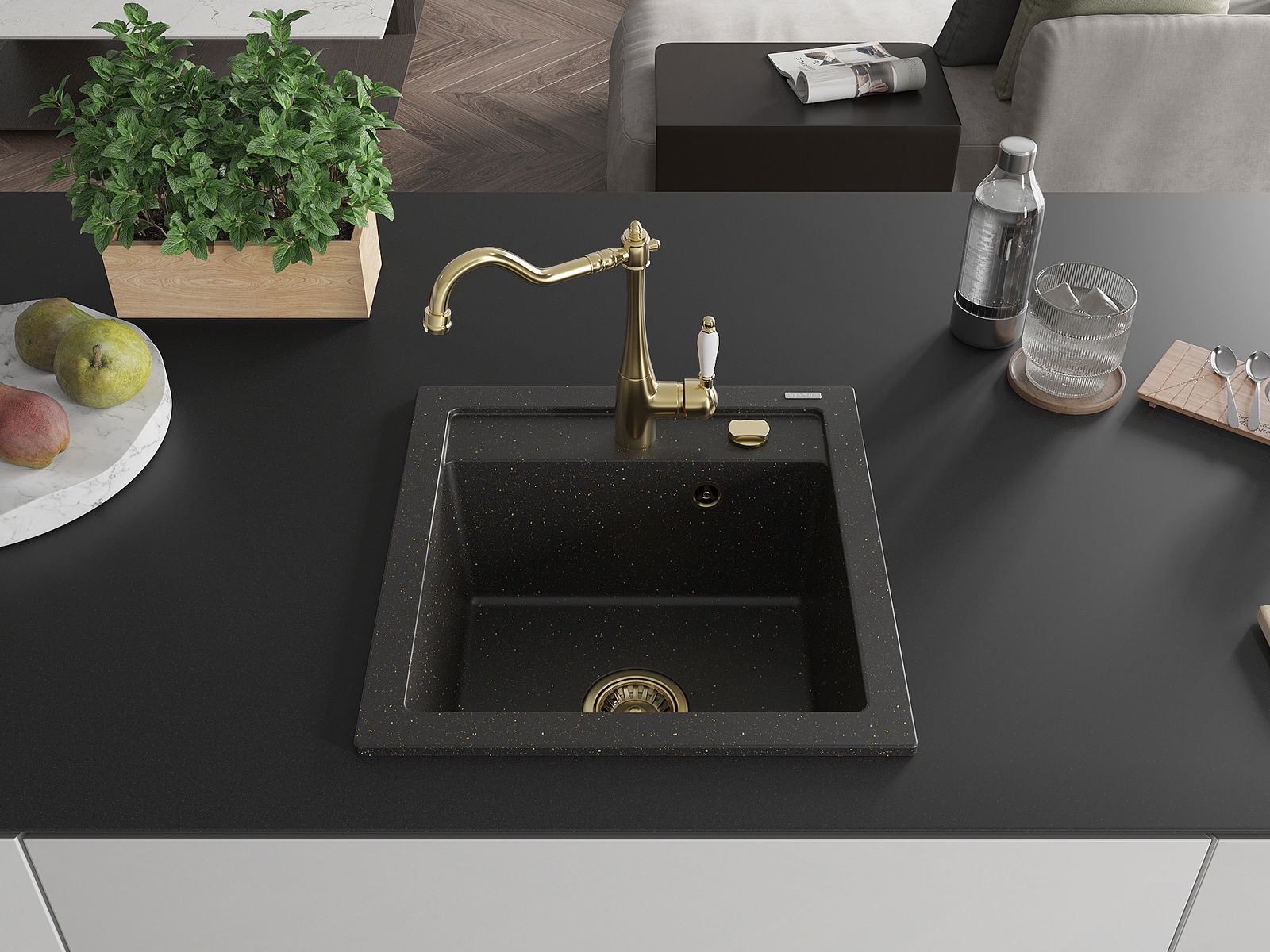 Mexen Vito 1-bowl granite sink with Carla kitchen tap, black/golden metallic - 6503-75-670700-50