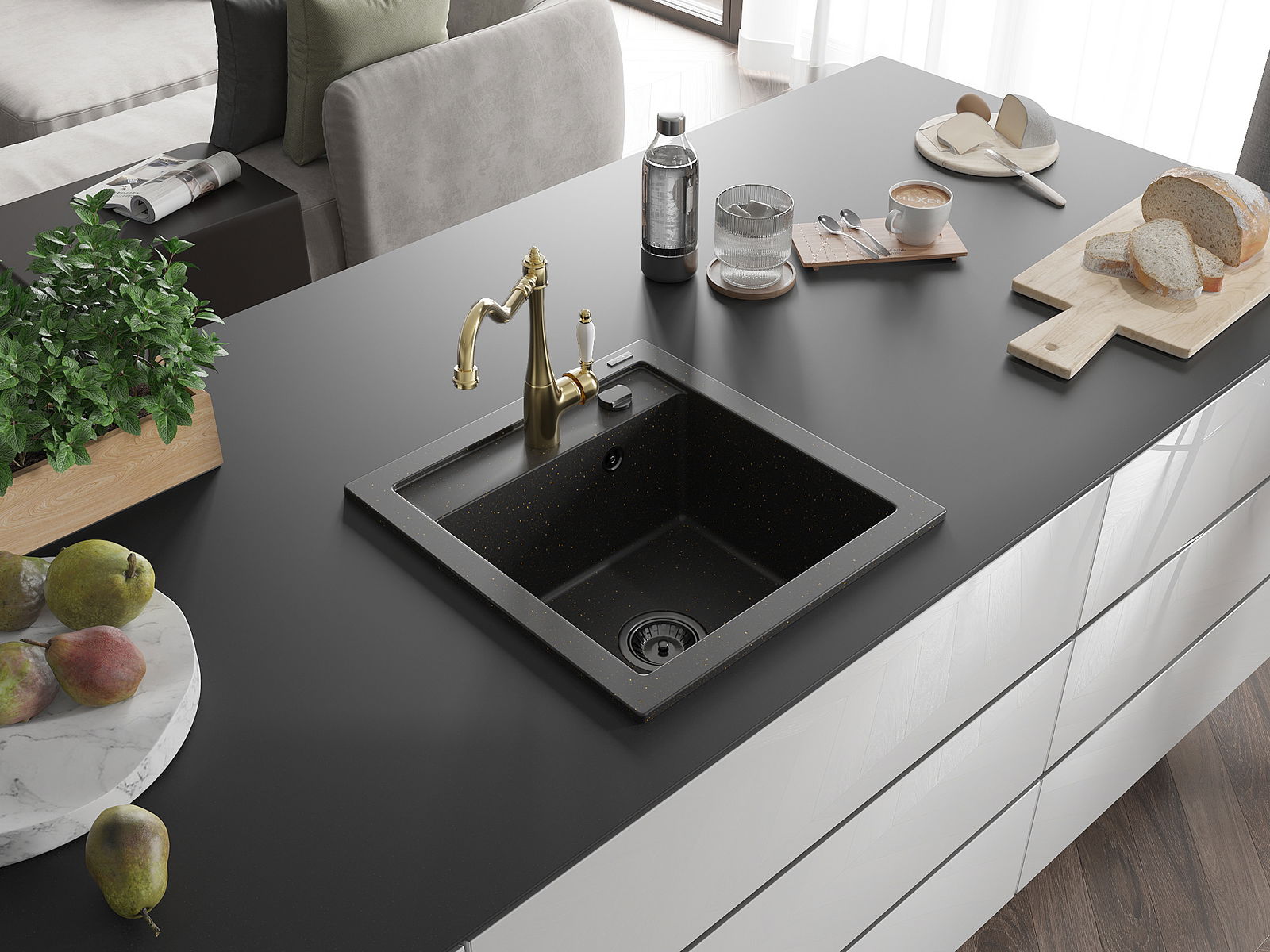 The sink is made of high quality granite. It is an elegant and, above all, practical complement to every kitchen, regardless of its style. High quality and granite durability ensure many years of use.