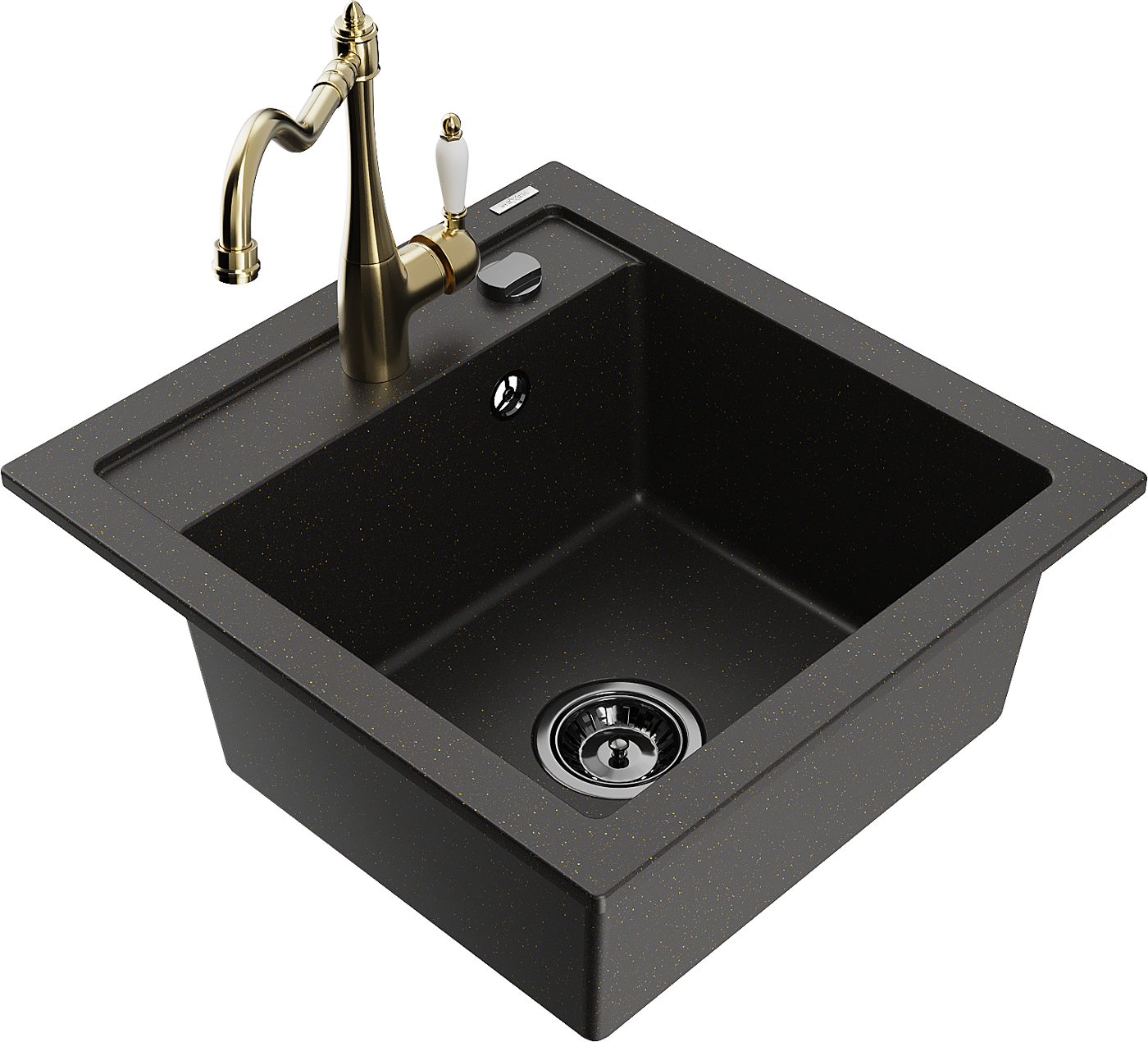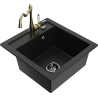 Mexen Vito granite sink 1-bowl with Carla kitchen tap, black/gold metallic - 6503-75-670700-50-B