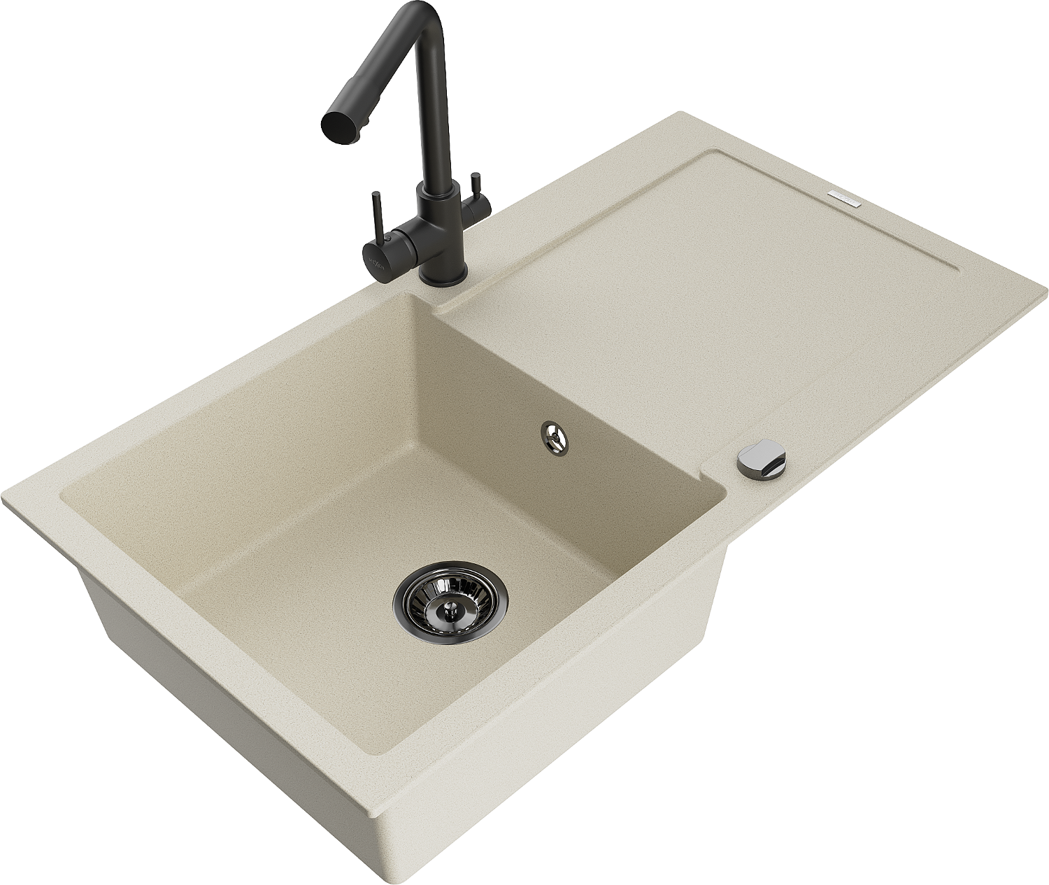 The sink is made of high quality granite. It is an elegant and, above all, practical complement to every kitchen, regardless of its style. High quality and granite durability ensure many years of use.