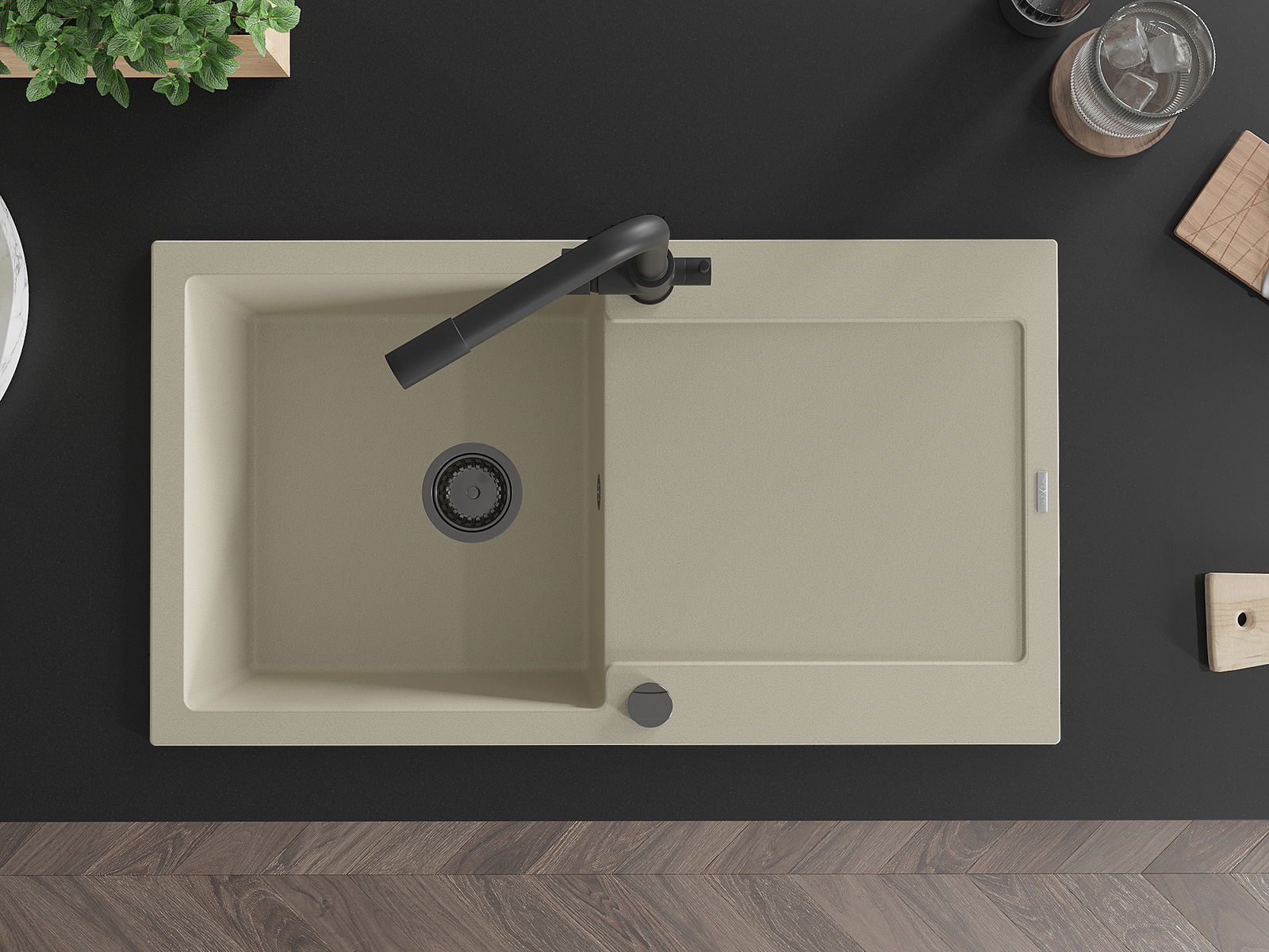 The surface of the sink is resistant to stains and discoloration, thanks to which it is easy to clean and retains its color for a long time. Aesthetic and practically complementing every kitchen.