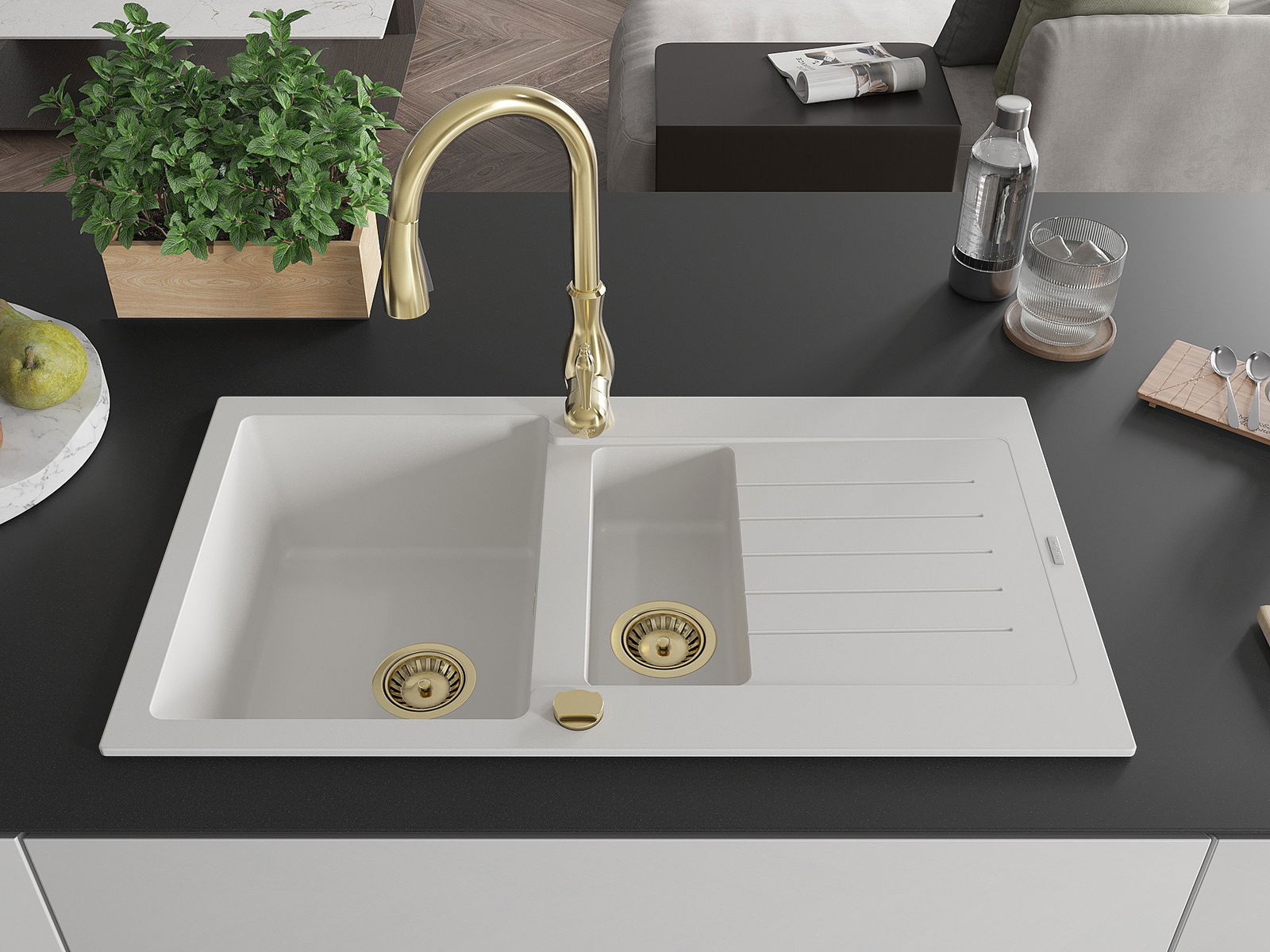 The sink is made of high quality granite. It is an elegant and, above all, practical complement to every kitchen, regardless of its style. High quality and granite durability ensure many years of use.